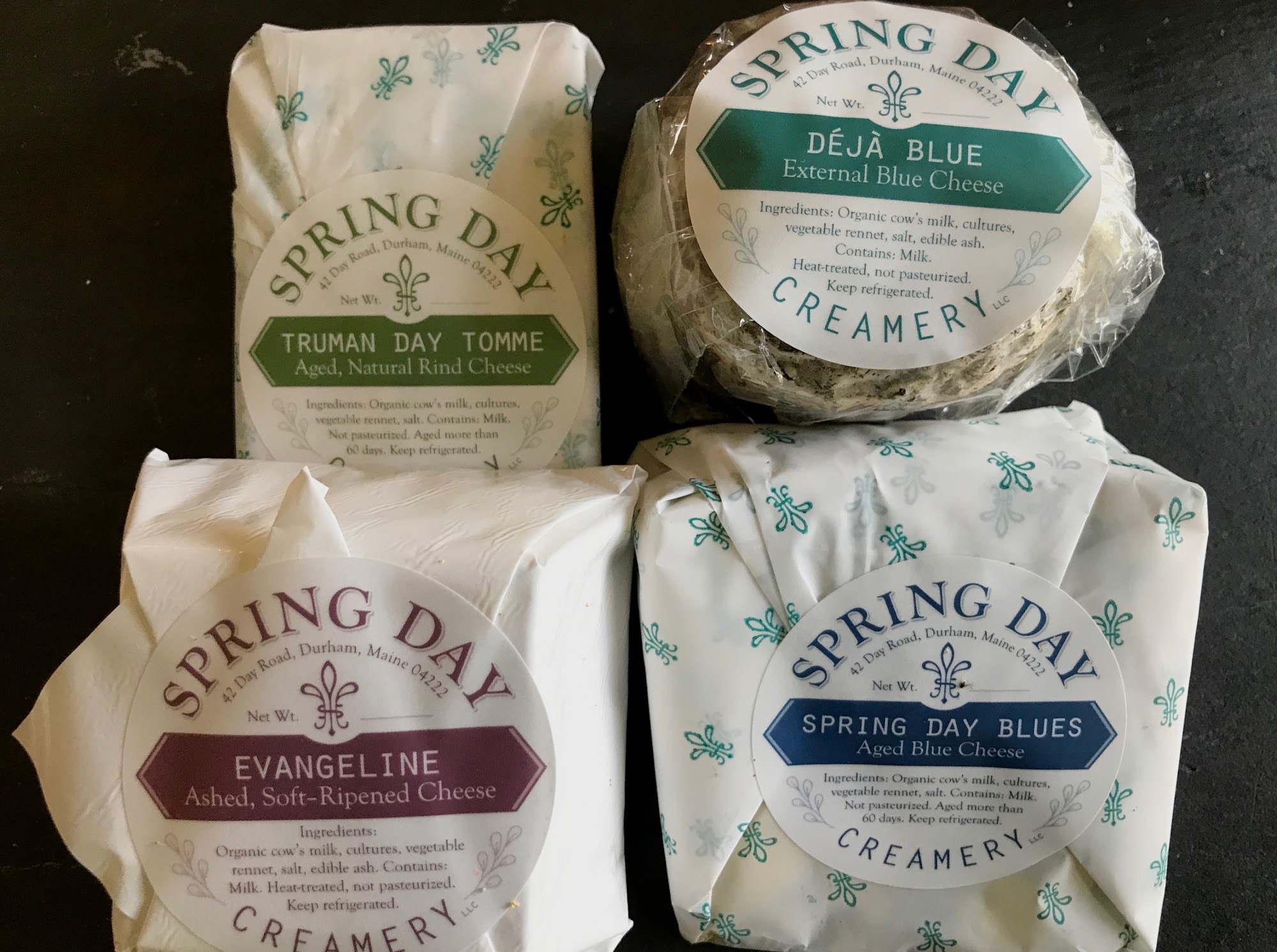 Spring Day Creamery is an award-winning microcreamery founded in 2008 in Durham, Maine. We handcraft soft-ripened and aged cheeses with a particular focus on creative variations of blue cheese. We sell year round at local farm stands, farmers' markets, cheese shops, co-ops, retailers and restaurants. Pre-ordering for pickup and shipping are available through the website. SELF SERVE IN THE RED BARN OPENS ON MAY 27, 2023.