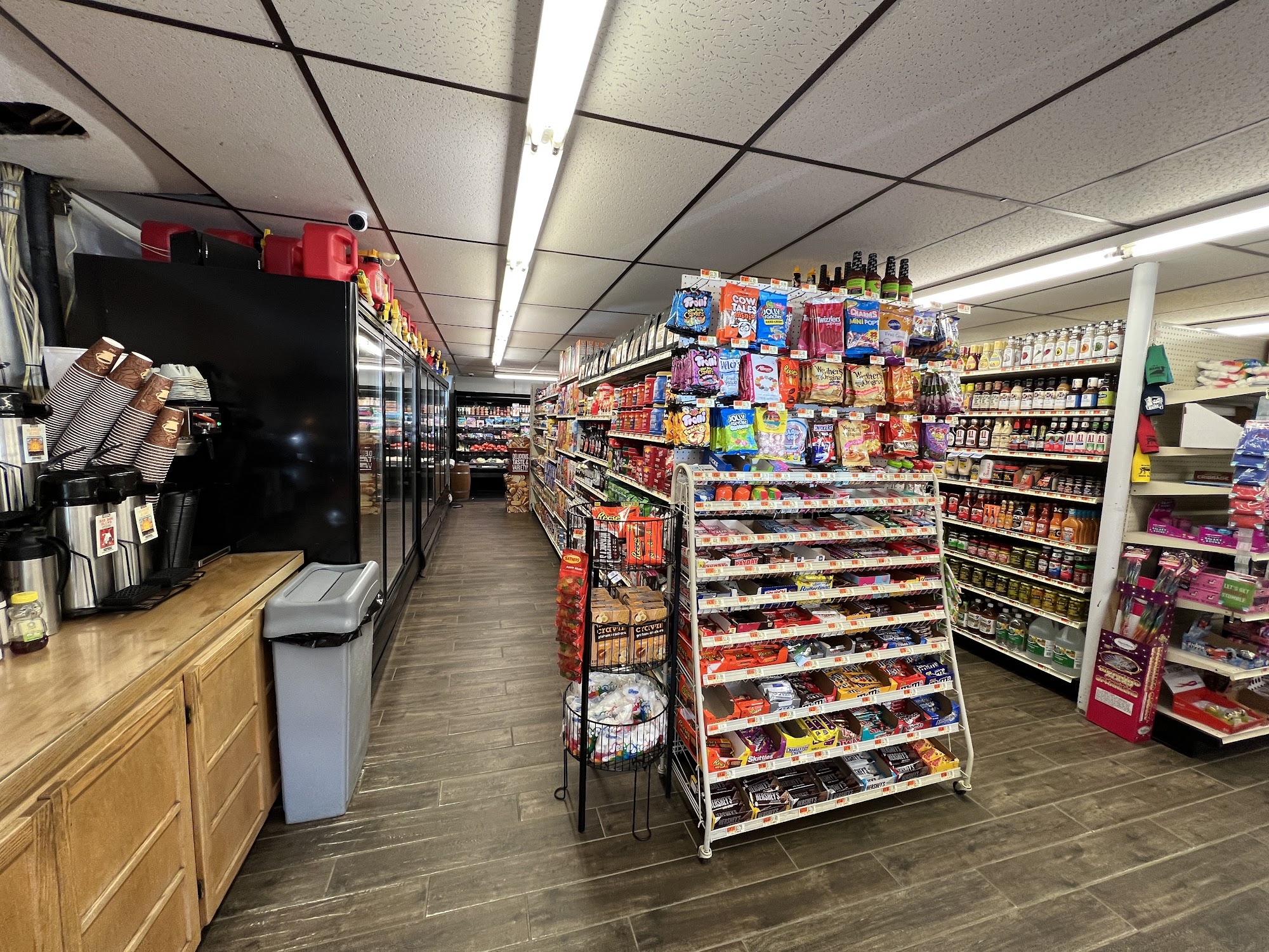 It has a great selection of sandwiches, meats, coffee, muffins and breakfast sandwiches ready early. The little country store also has wheel cheese, pizza, breakfast pizza, whoopie pies and a superb pizza. Everything you need is there, from fish hooks and pickled whatever to camo gear, power tools, supplies for the kitchen and a screw to fix an electric scooter. Good old school gas including 90 octane without nasty ethanol. This market is a perfect match of all necessities and new interesting things for you up the Eustis way.