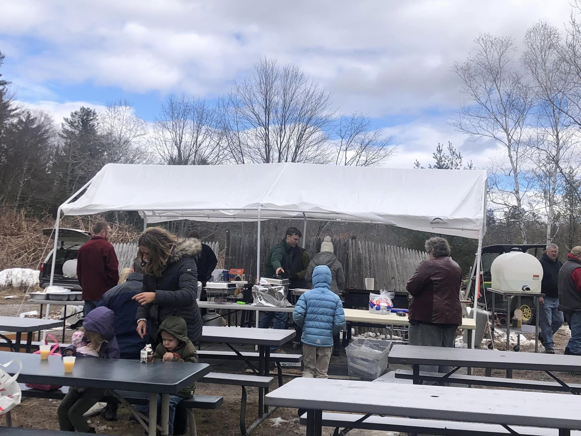 Jo's Sugar House/ Hartwell Farm is a perfect place for a sugar shack, especially during the Maine Maple Sunday open house. It features a real sugar shack with demonstrations and knowledgeable, friendly people to answer questions. Many maple products are available to buy. Visitors can enjoy free vanilla ice cream with maple syrup and fresh cooked blueberry pancakes with sausages and homemade syrup. There are several picnic tables and plenty of safe off-road parking. The treats are delicious and the people are welcoming and nice.