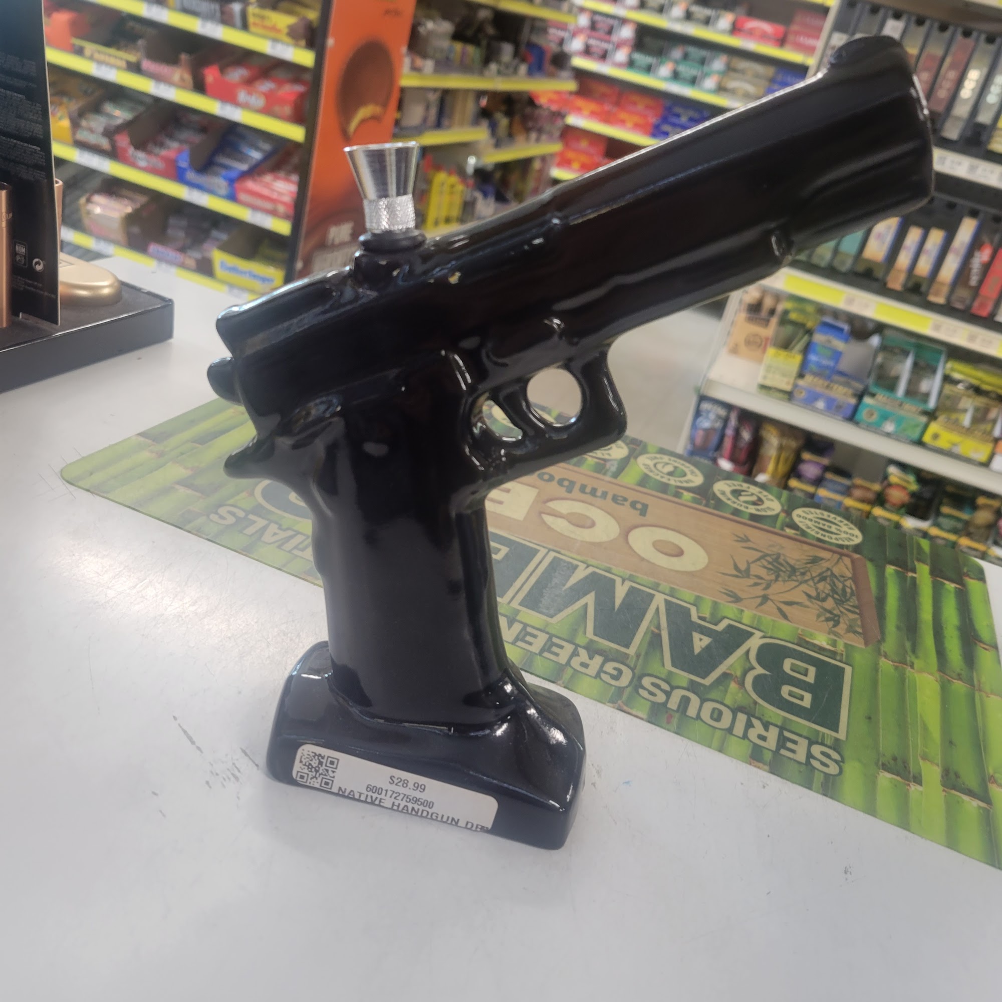 It's a cigarette store, there's a wide variety of cigarettes, tobacco cigars, lighters and other knickknacks, a cold beer, soda, a handful of snacks, coffee. A good little store.