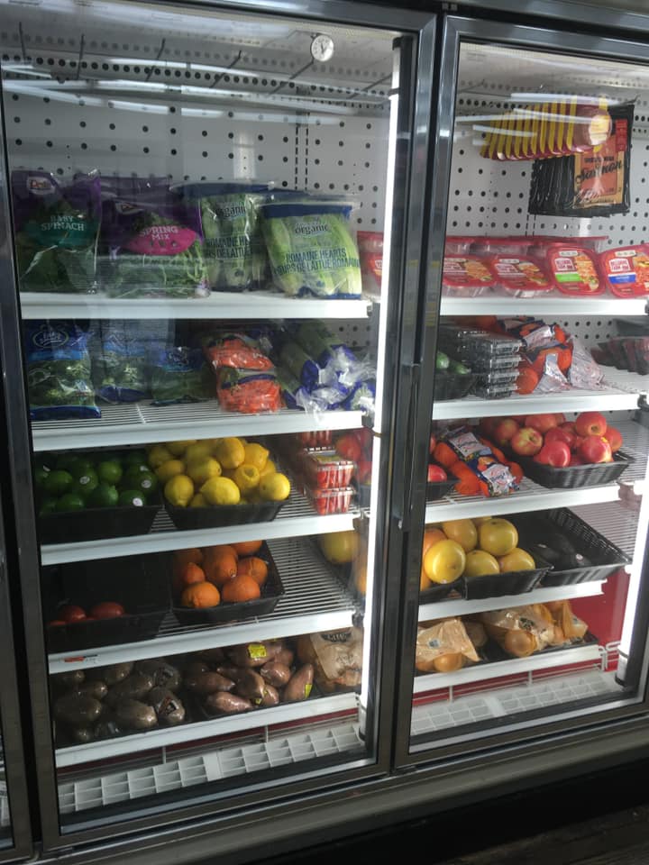 Well stacked with essential groceries. Also a selection of fresh meat and vegetables