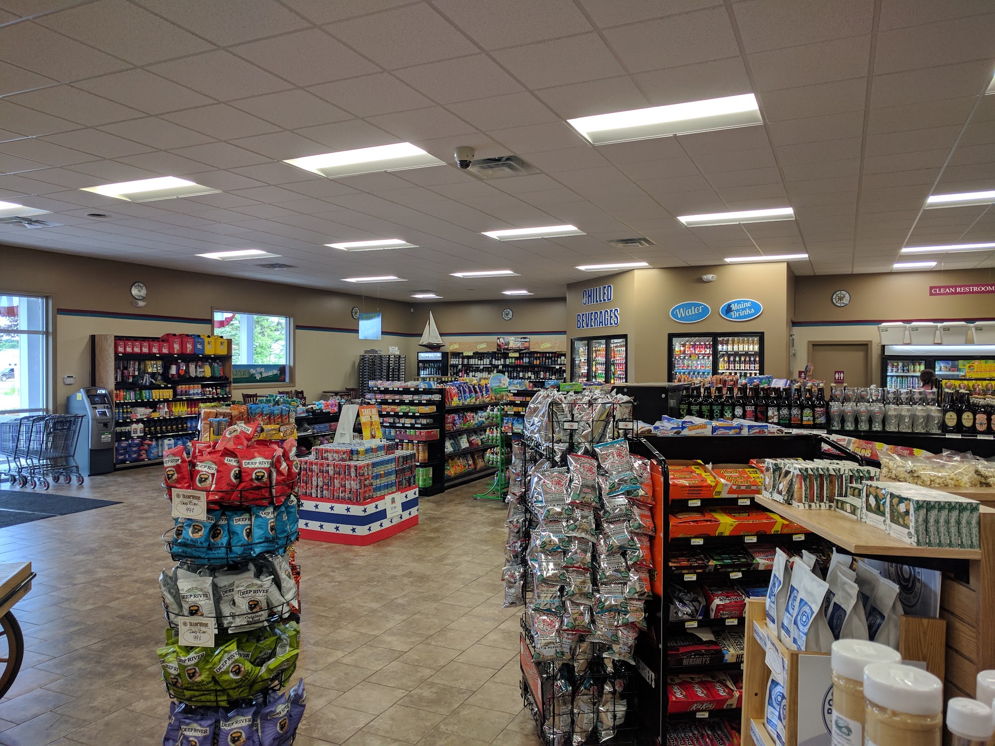 Large convenience store, bathrooms clean and stocked, store clean.. no side kicks in your way at end of isles . Cashier was very friendly, clean shirt, ready to work.