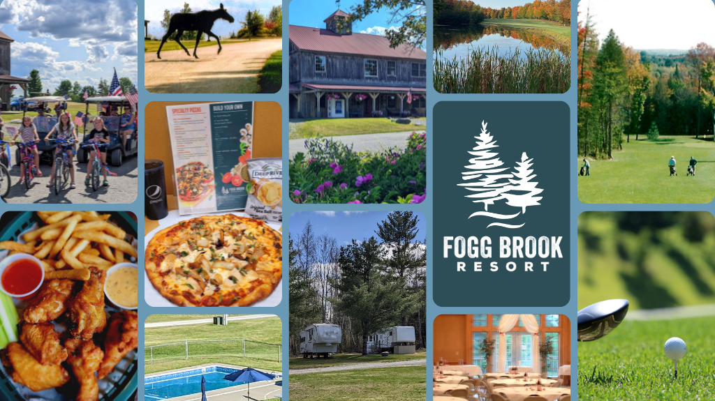 Fogg Brook Resort is home to a scenic 18-hole, par 72 golf course with a 6,550 yard layout. There are four sets of tees to accommodate any level of golfer. Get in some practice on our grass tee driving range and our chipping & putting area. Schedule a lesson or grab the latest gear in our well-stocked golf shop. After your round, stop into Foggy’s Pub which serves up fries, wings, burgers, pizza, entrées, salads, sandwiches, and daily specials. Grab a booth, table, or pull up a stool to our beautiful bar serving your favorite drinks and 20 refreshing options on tap. Enjoy the range-side deck in the summer and play cribbage, trivia, or catch a game. It’s the perfect place to celebrate your round or drown your sorrows. See you on the course!
