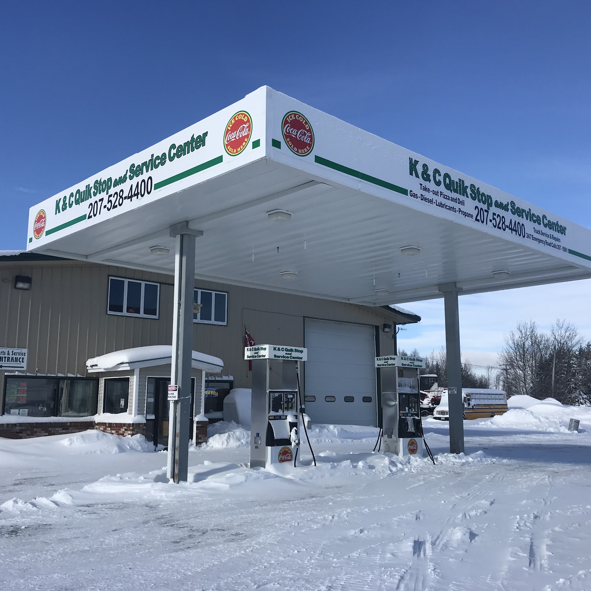 K&C QuikStop and Service Center is a locally owned operation offering regular and non-ethanol gas. Full menu for take out or eat in. Convenient store with grab and go food, soda, beer, and snacks. Full service garage, and 24/7 towing and recovery of light duty and heavy duty vehicles. Park and ride snowmobile access to ITS-81 directly on lot.