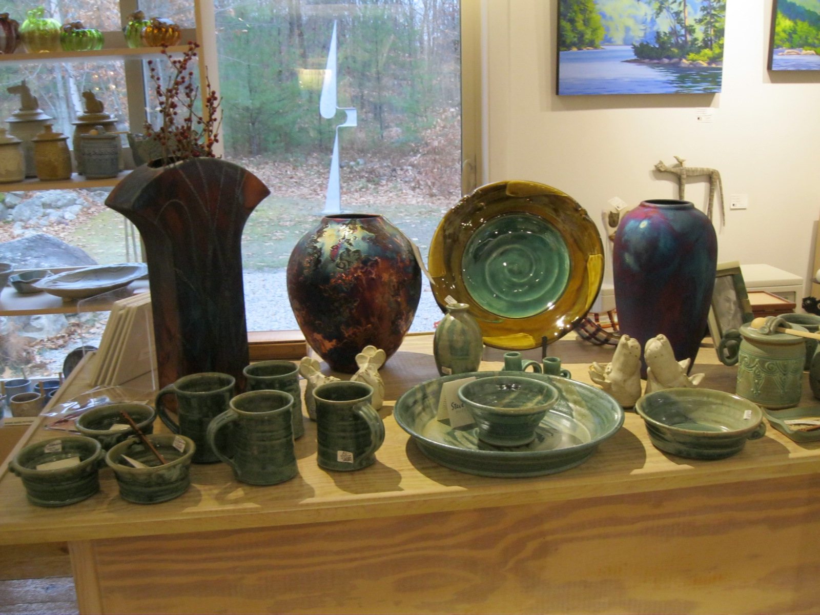 Hole In The Wall Studioworks, is a year round gallery situated in the Lakes Region of Southern Maine. Our focus is on contemporary American craft, including pottery, handmade studio jewelry… sterling silver, vitreous enamel, gold filled and gemstone jewelry. We also represent accomplished Maine painters, their paintings are rotated on our walls. During the summer months, we produce three exhibits featuring our artists and invite other artists to join the gallery for these exhibits.
