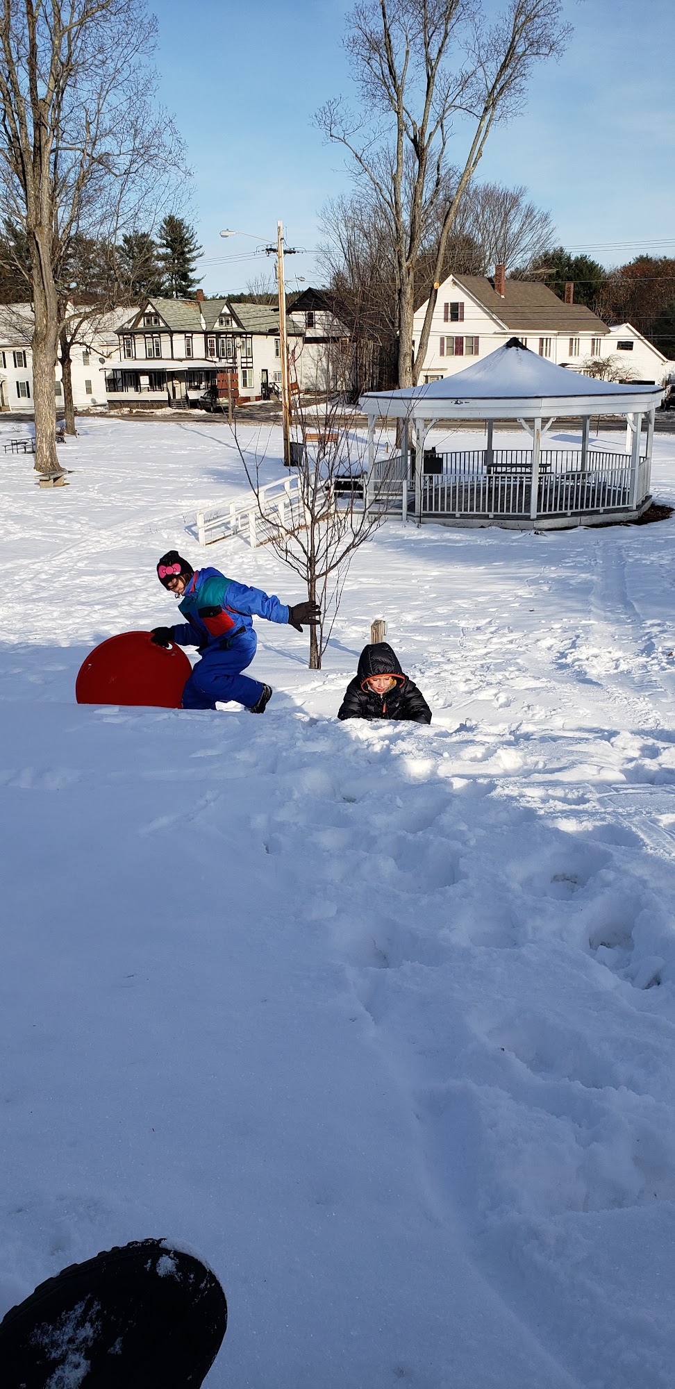 It doesn't have swings but the slides are awesome and my children are obsessed with the gazebo. We always take a good time there.Playground: No swings, two jungle gym sets over for all ages and one for smaller kids. They also have a toddler slide.Picnic area: It's very clean and nice.