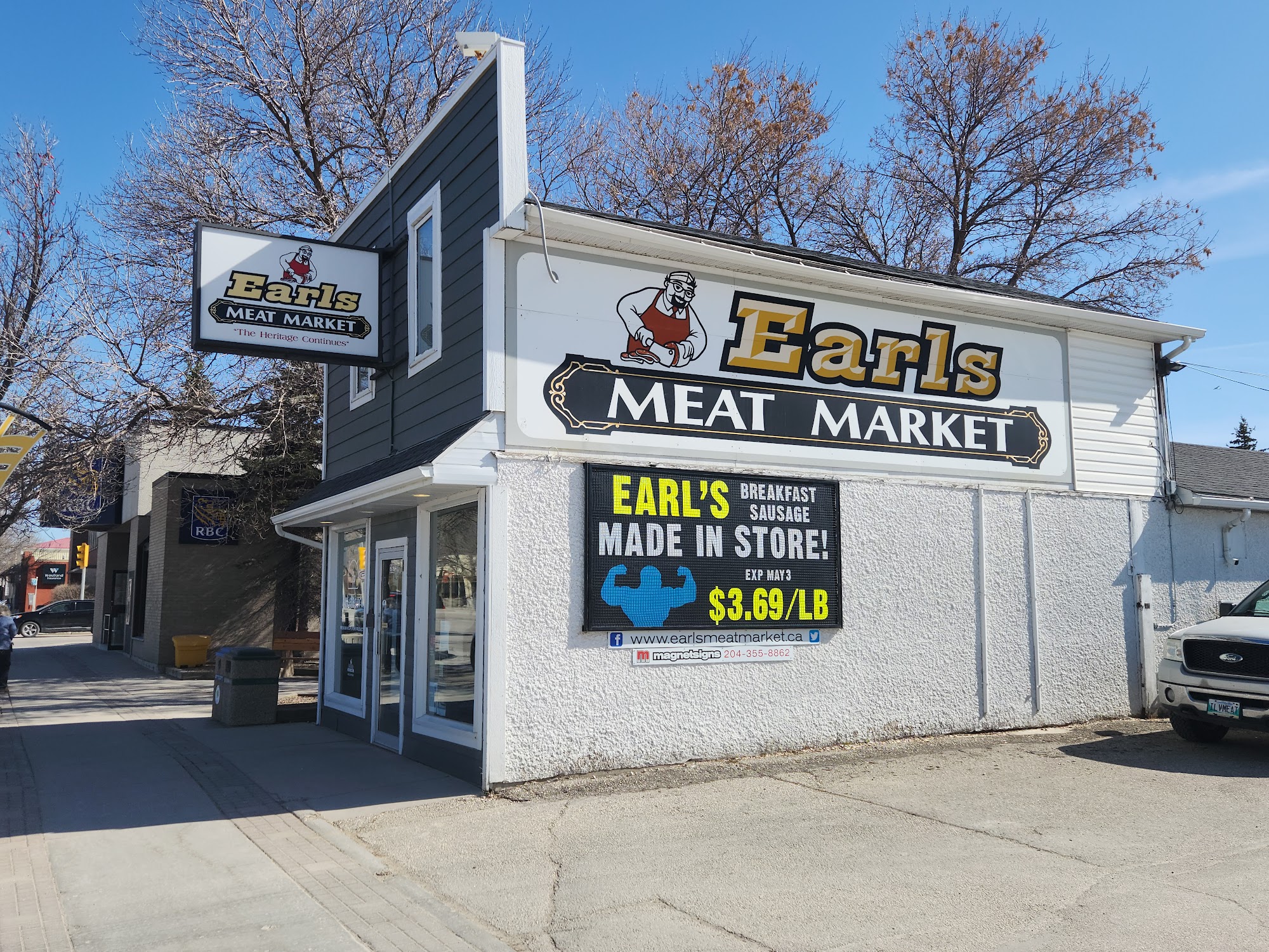 Earls Meat Market is a great go-to meat shop in the heart of Steinbach. It offers a great selection of always fresh meat, including excellent farmer sausage, smoked pork loins, smoked pork hocks, pepperoni, and lean beef available in bulk. The shop is one of the cleanest meat shops, with an amazing smell. Everything comes cut and packaged, with most labeled. Service is great and they are happy to answer questions, though it can sometimes be a little slow. The location and parking are great, and they have summer BBQs outside. It is a place completely recommended in the area.
