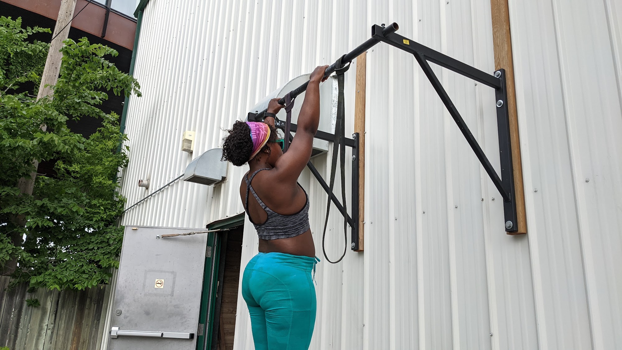 A very nice place with a friendly atmosphere. There are a variety of exercise equipment such as a bike, rowing machine, and skis. There are free bars and a rope.