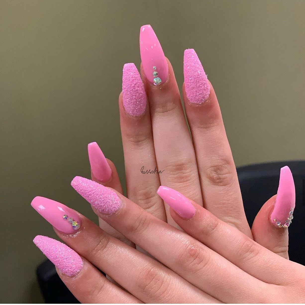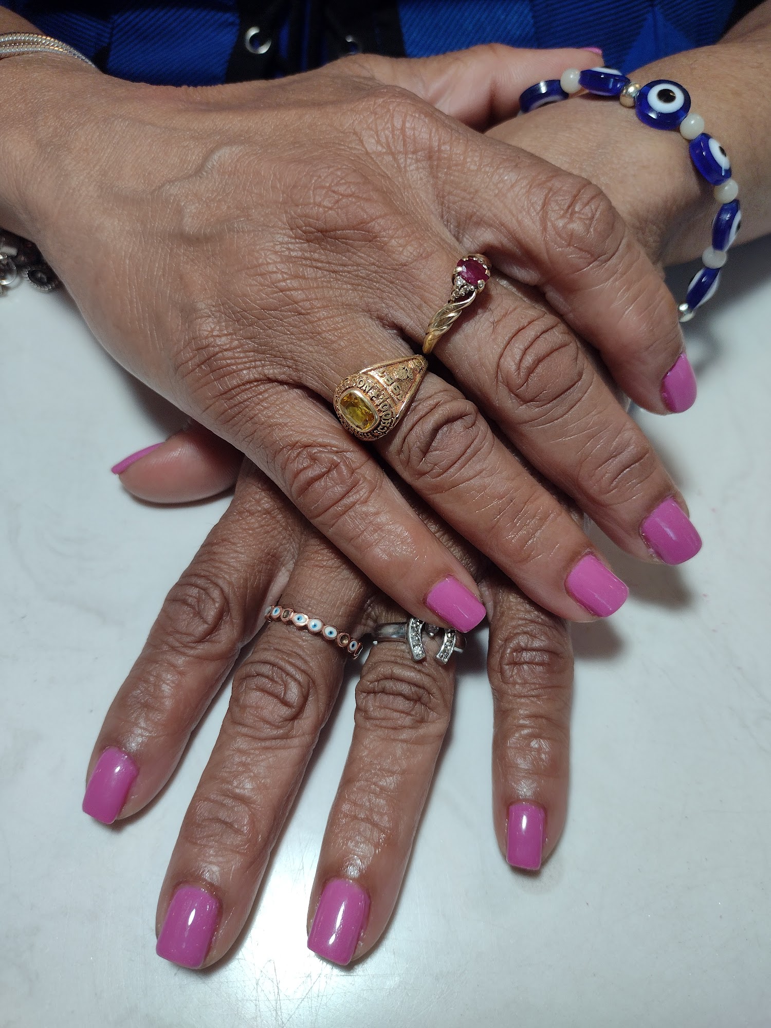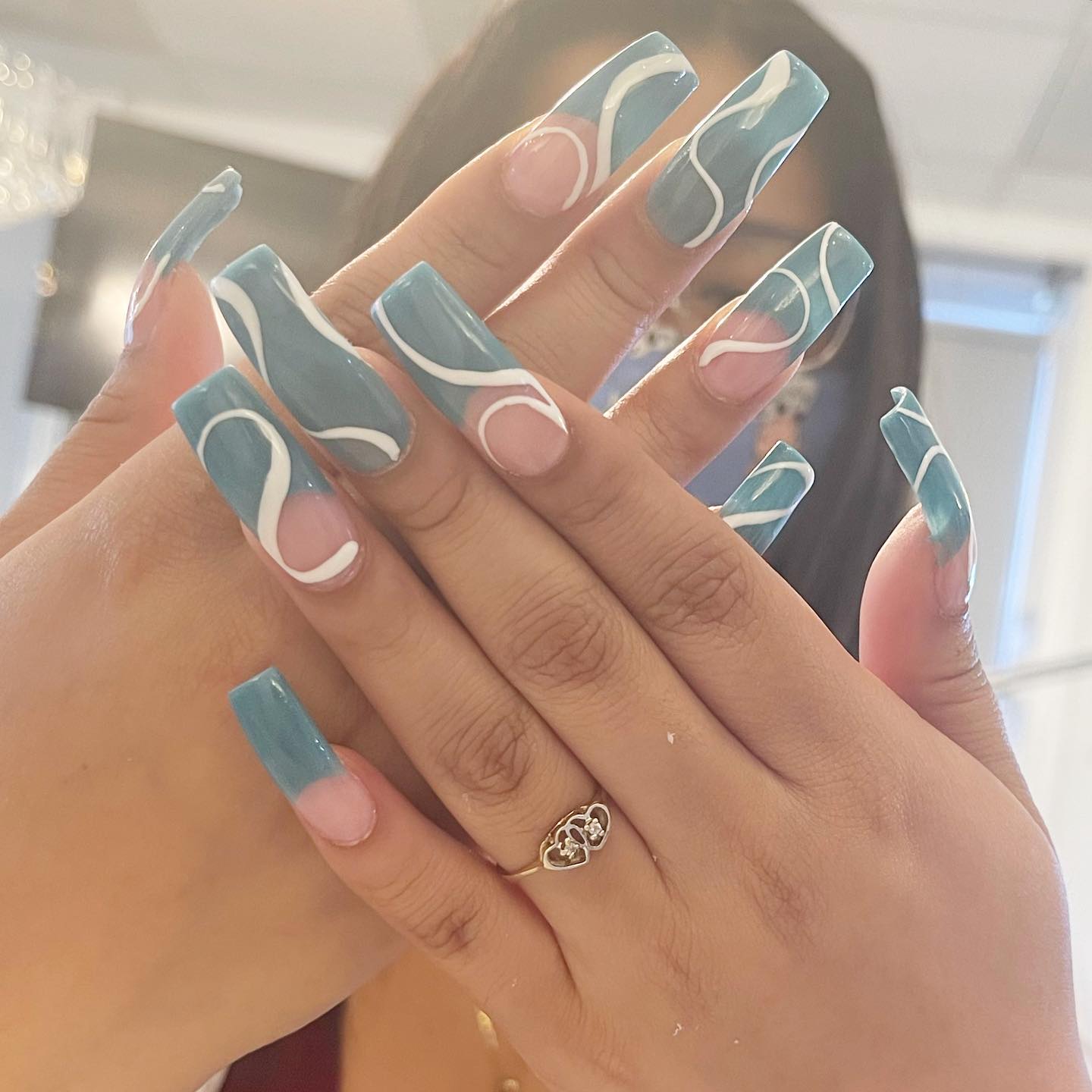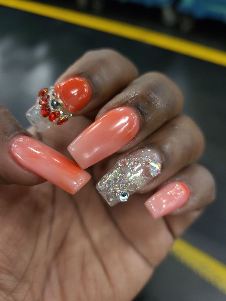 Love my nails!! I got here at 7 PM and she finished around 8 PM. Offered me water or wine. Definitely recommend to the busy girls not to mention she was doing a fill-in and a nail replacement over someone else work and made them look new.