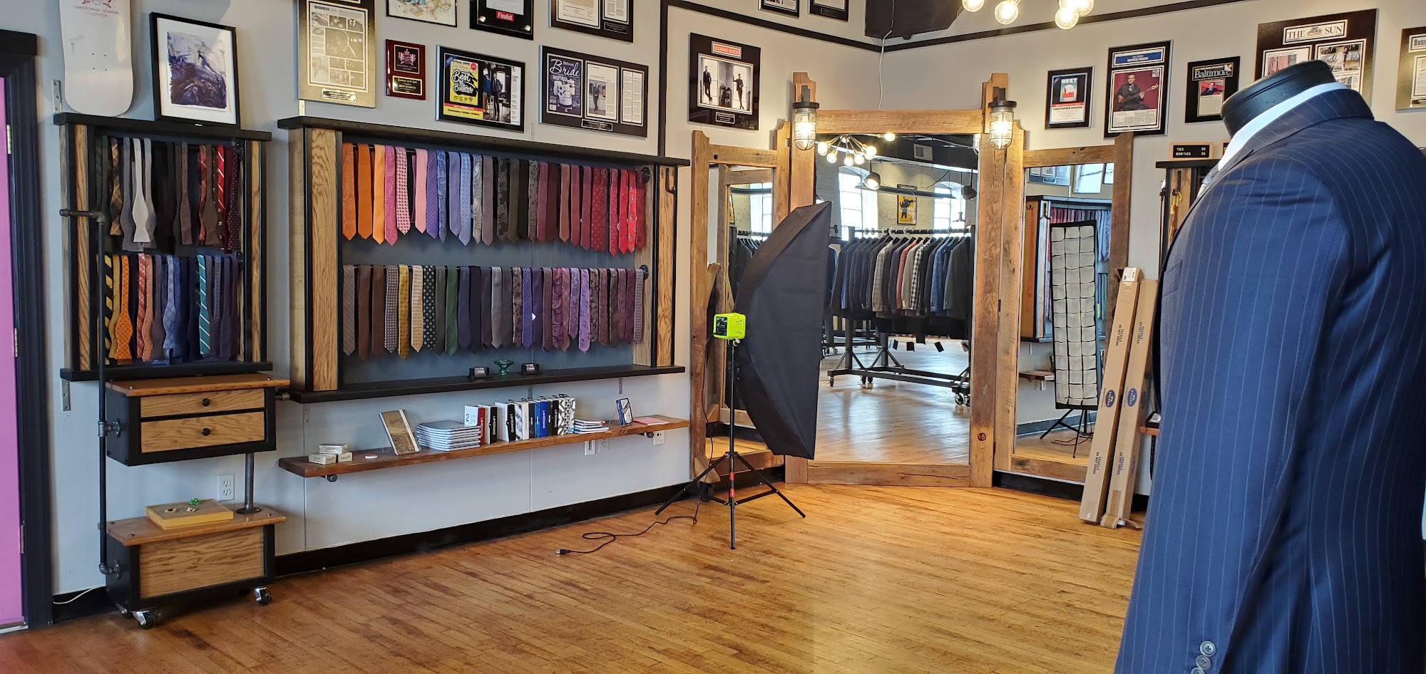 Christopher Schafer Clothier is a super cool local-Baltimore spot known for its excellent quality and highest quality suits. The business provides a great experience with a streamlined process and tons of selection. Everyone there is very friendly, extremely professional, knowledgeable, and a pleasure to work with, offering absolutely 100% personalized service. The team are true professionals and masters of their craft, working closely with clients to find the right suit within a budget. They are awesome through the entire journey, from the initial meeting and discussions to follow-up fittings and alterations. Many clients, especially those preparing for a wedding, report it is the finest piece of clothing they have ever worn, making them feel great and like a million bucks. The store is so welcoming you could hang out there for fun. Clients find their formal and business wear home, becoming customers for life who would never consider going elsewhere for custom-fit dress clothes, and highly recommend the experience.