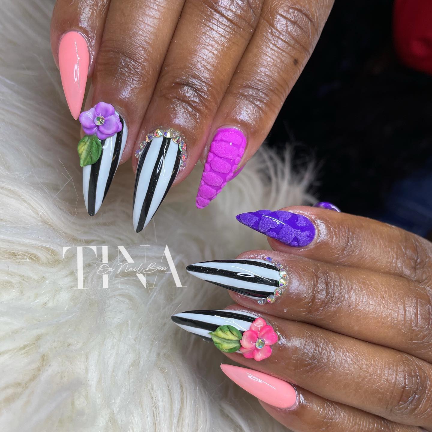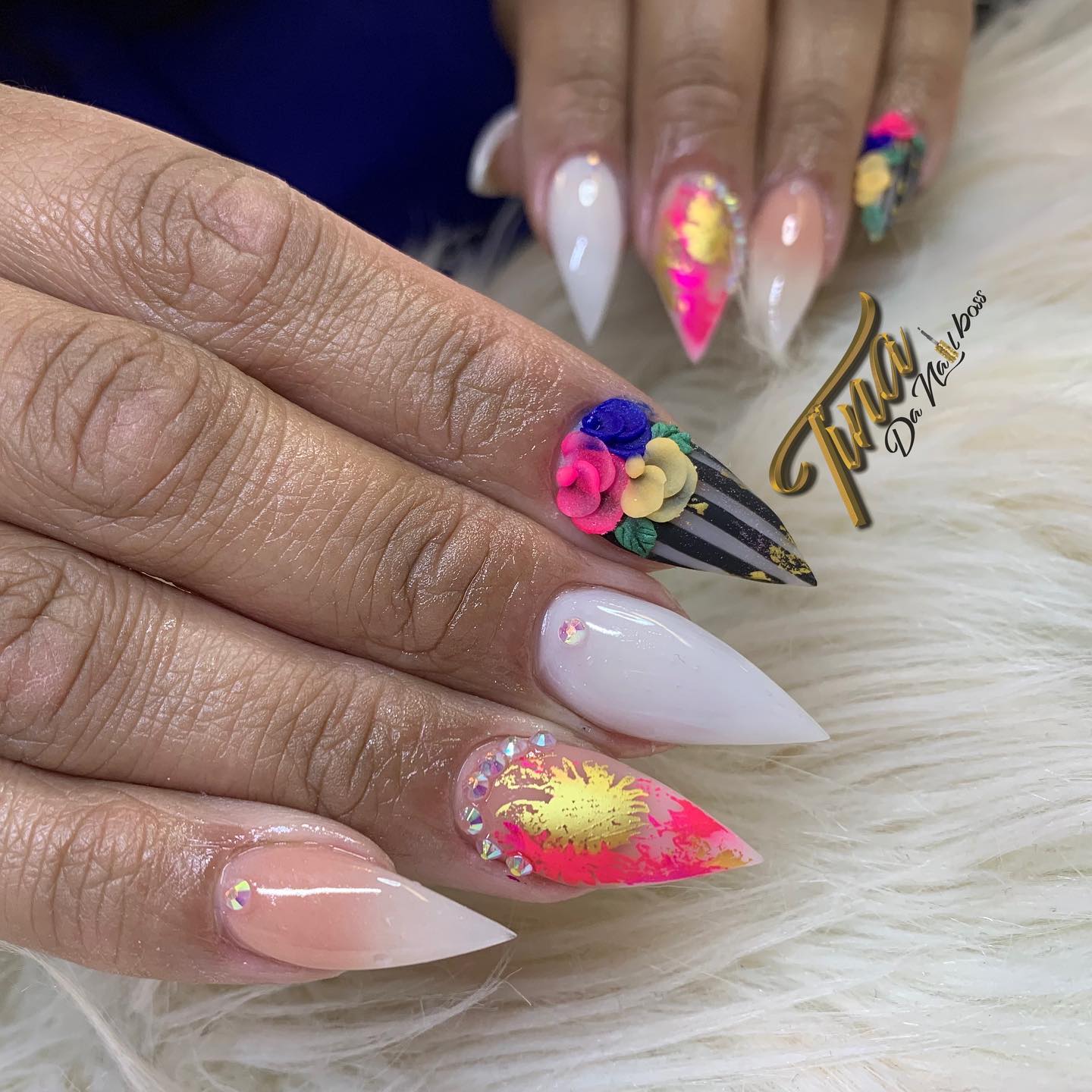 Tina, Moochie and Shy are amazing! Their quality of work is like none other! Nails don’t break, paint doesn’t chip, and their products are off high quality! They don’t just “do” your nails, they care for them! Highly recommend
