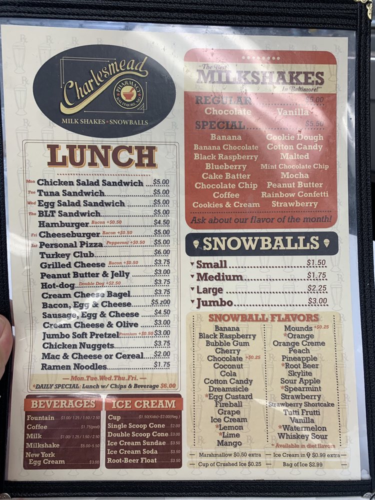 Charlesmead Pharmacy Inc. is consistently described as the best pharmacy, with many stating it is hands down the best in Baltimore. The place feels like a small town pharmacy from long ago, a time capsule out of the 1950s. The service is super personal, efficient, and amazing. The staff in all positions are up and down fabulous, the nicest people who treat customers like human beings. They are so kind and sincerely care, which truly eases customers' minds. Humans answer phone calls in a timely manner, and the phone menu is quite forgiving. They have an automated refill tool for convenience but provide personal help, including delivery service. The pharmacists are helpful and will pick out the best medicines that customers need. Their prices on prescriptions are competitive, as are their store open stock items. While their open hours can be hard to work around, the overall experience is so good that customers cannot go back to big name places. The business also features a great soda bar, lunch counter, and cafe. The snowballs, milkshakes, and lunch counter service are great, being simple and affordable in a pinch. The experience is a pleasure, and customers hope Charlesmead sticks around forever.