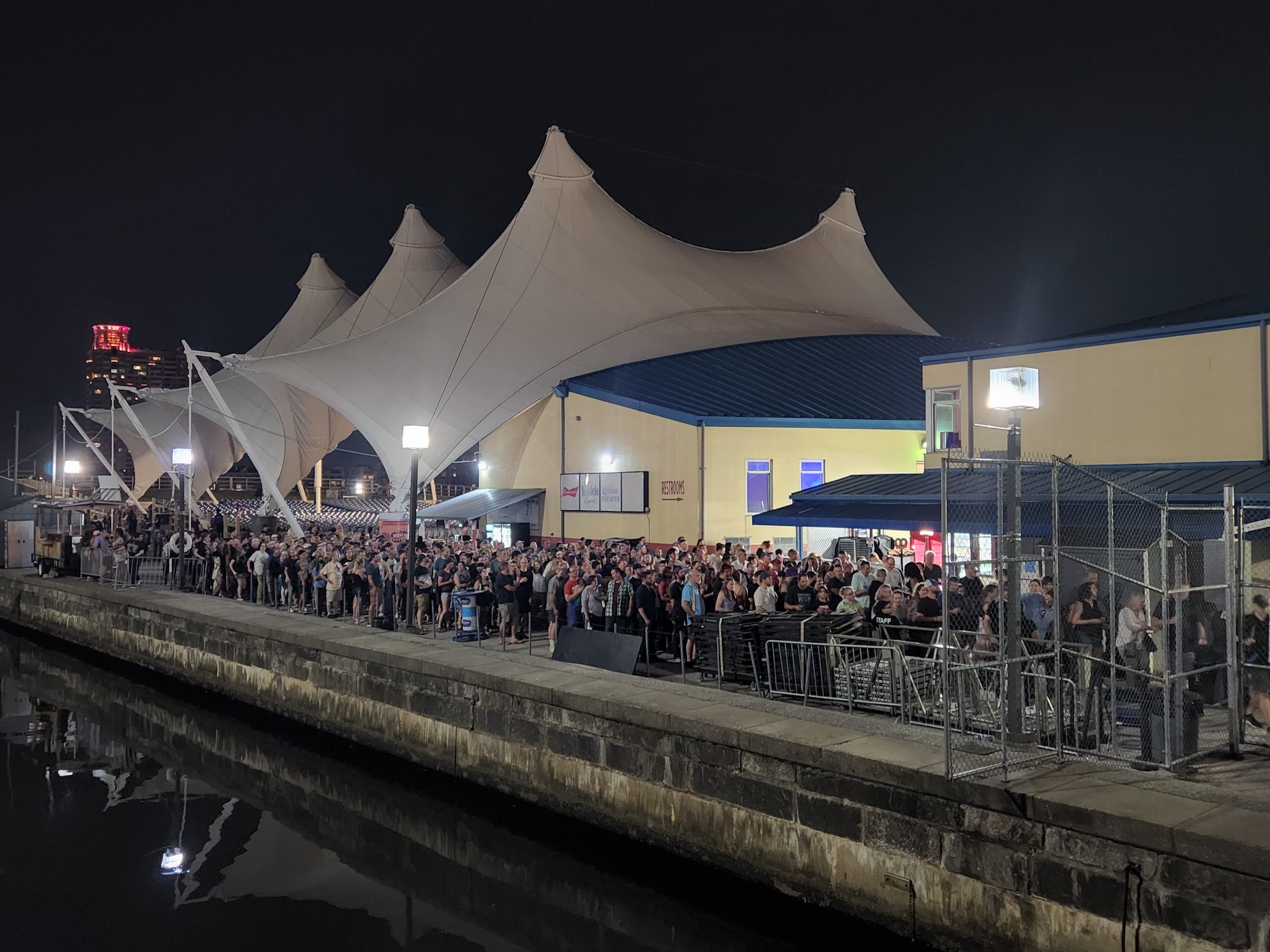 The Pier Six Pavilion is a beautiful concert space located on the Inner Harbor of Baltimore. It offers a stunning waterfront setting, with a Marriott hotel and several restaurants nearby. Visitors can easily find their seats, grab drinks and snacks, and access the restrooms with the help of the friendly and kind staff. The venue is known for its great views of Baltimore from the lawn seating area, although it can get crowded during sold-out shows. Concertgoers praise the overall layout and atmosphere, particularly for outdoor events like the recent Elevation Worship concert, where the artists interacted closely with the enthusiastic crowd.