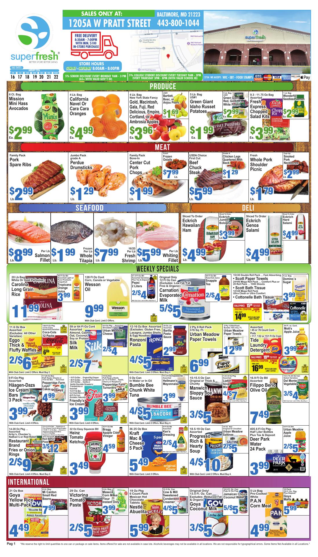 SuperFresh Baltimore is known for its excellent fresh produce and high-quality meat. Customers appreciate the wide selection of international spices and solid deli options. The seafood section is also highlighted for its quality. While many find the prices reasonable, some suggest lowering them to better serve the local community. Special items like vegetarian cheddar cheese and pre-sliced vegetables, along with unique products like ginger tea, add to the store's appeal.