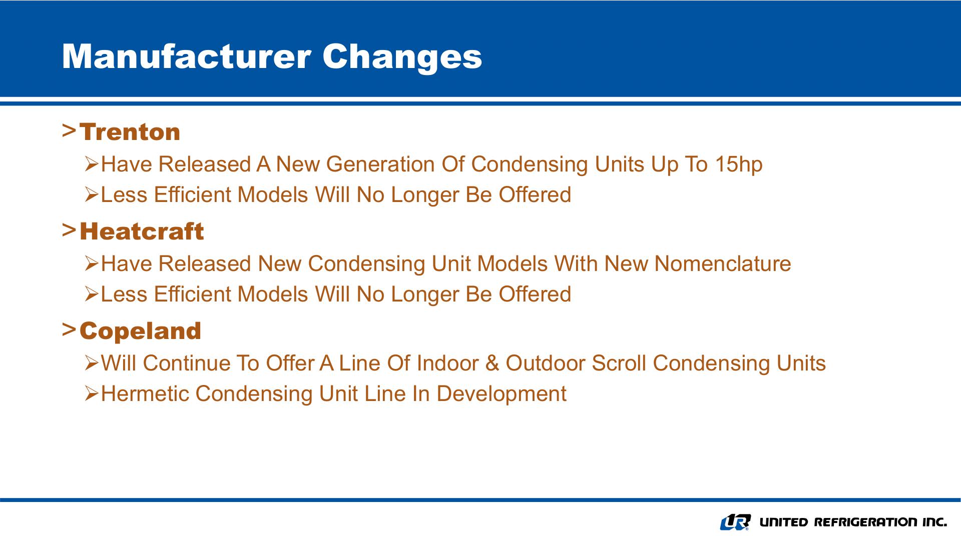 United Refrigeration Inc. is one of the largest distributors of refrigeration, air conditioning and heating parts and equipment in North America. Founded in 1947 in Philadelphia, United Refrigeration now has locations in the United States and Canada. United Refrigeration carries all brand name products by top manufacturers such as Arcoaire, Bally Refrigerated Boxes, Continental Refrigerator, Copeland, Daikin, Danfoss, Drake Refrigeration, Heatcraft, Honeywell, Hussmann, Johnson Controls, Keeprite Refrigeration, Manitowoc, National Comfort Products, National Refrigerants, Sporlan Valve, Standard Refrigeration, Tecumseh, Trenton Refrigeration and many others.