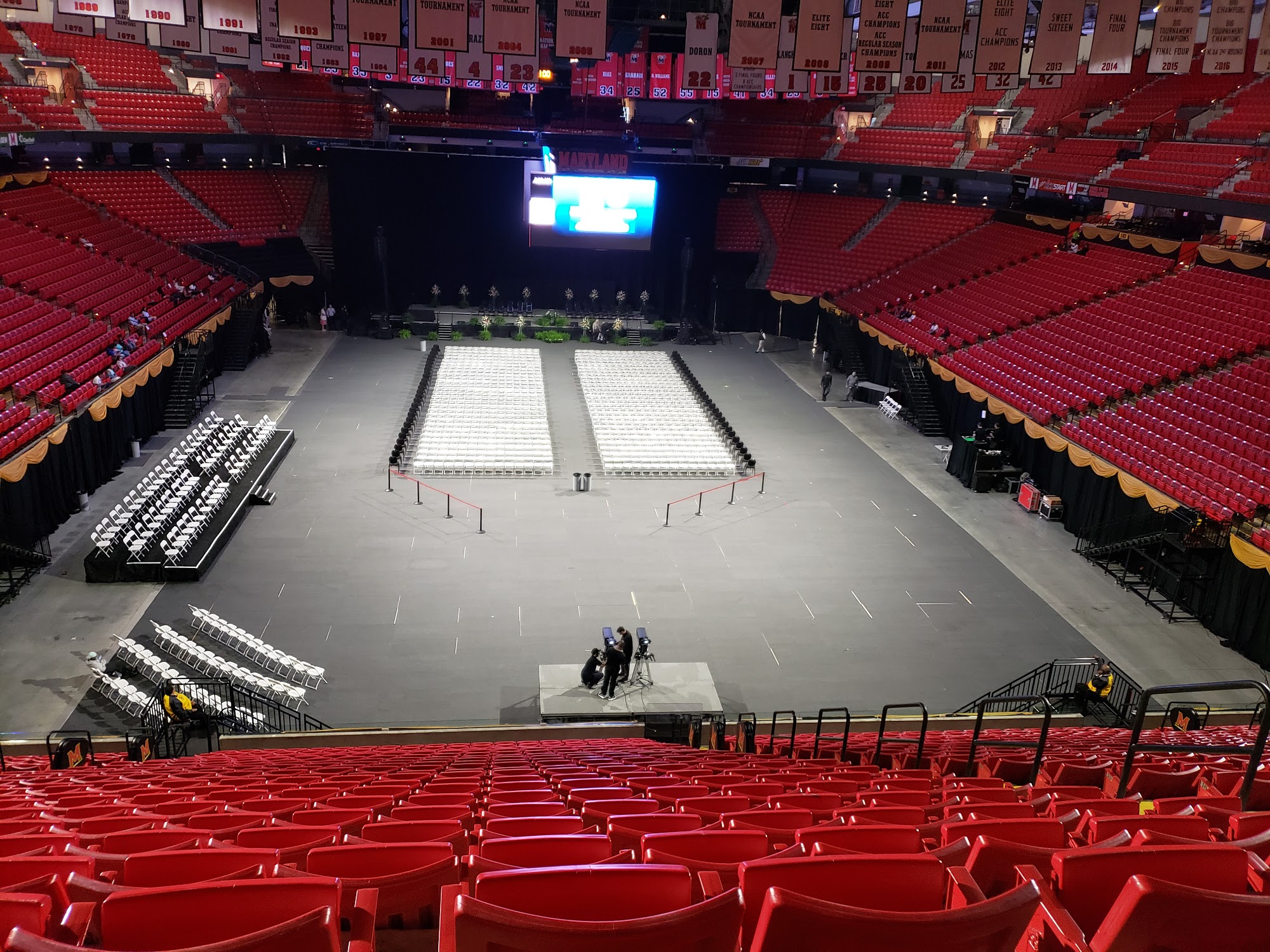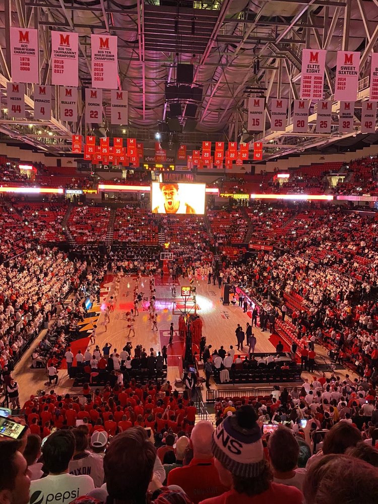The XFINITY Center is the home of the University of Maryland basketball programs and the Maryland Athletics Department, located on the university's campus in College Park, Maryland. It hosts the university's graduation ceremonies, where attendees are subject to security measures such as bag inspections and water bottle restrictions. The arena has hosted numerous sporting events, including the Big Ten Wrestling Championships, and is praised for its impressive facilities, food options, and enthusiastic fan support for the Terrapins sports teams.