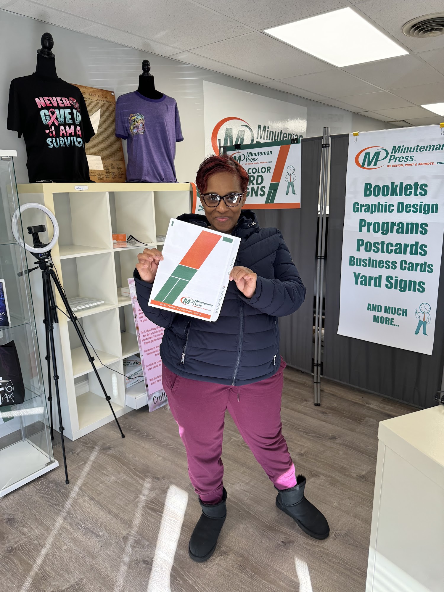 Wonderful Experience! We ordered bookmarks, programs and poster boards for my mother’s funeral. The staff was super friendly, compassionate and professional. Everything was done beautifully. They are very fast and the product is amazing. Thanks so much to the people of Minuteman Press.
