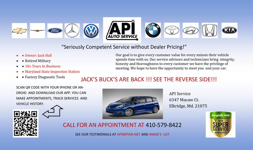 API Auto Repair in Elkridge, MD, is a trusted Maryland State Inspection approved location known for its professional and friendly service. Customers appreciate the straightforward appointment process and the quick completion of inspections, often within an hour. The staff is welcoming, patient, and willing to answer questions about tire and brake maintenance, providing helpful advice. The shop is accommodating, fitting customers in on short notice, and offering reliable, reasonable pricing. They prioritize safety and customer satisfaction, explaining repair needs clearly and suggesting solutions without pressure. During visits, customers have had positive experiences with services like oil leak repairs, where the team not only fixed the issue at a fair price but also showed the problem to the customer. The staff advises on the most economical and appropriate parts for vehicles and offers complimentary services when applicable. Overall, API Auto Repair is recognized for its efficiency, professionalism, and customer-oriented approach, making it a reliable choice for inspections and repairs that protect vehicles and ensure safe driving.