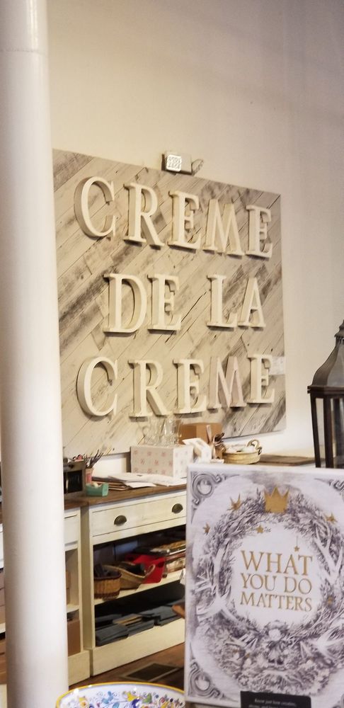 Creme de la Creme is a very nice shop with a beautiful aesthetic and a lovely atmosphere. It is filled with unique, beautiful, well-made, and lovingly curated items. Shoppers find fantastic body soaps, wonderful candles, quote canvases, beautiful hand painted jewelry, great things for your table, and wonderful books. The staff is very helpful. Many call it one of their favorite stores, where they always discover new things to bring home. Some items are expensive, but they are high quality.
