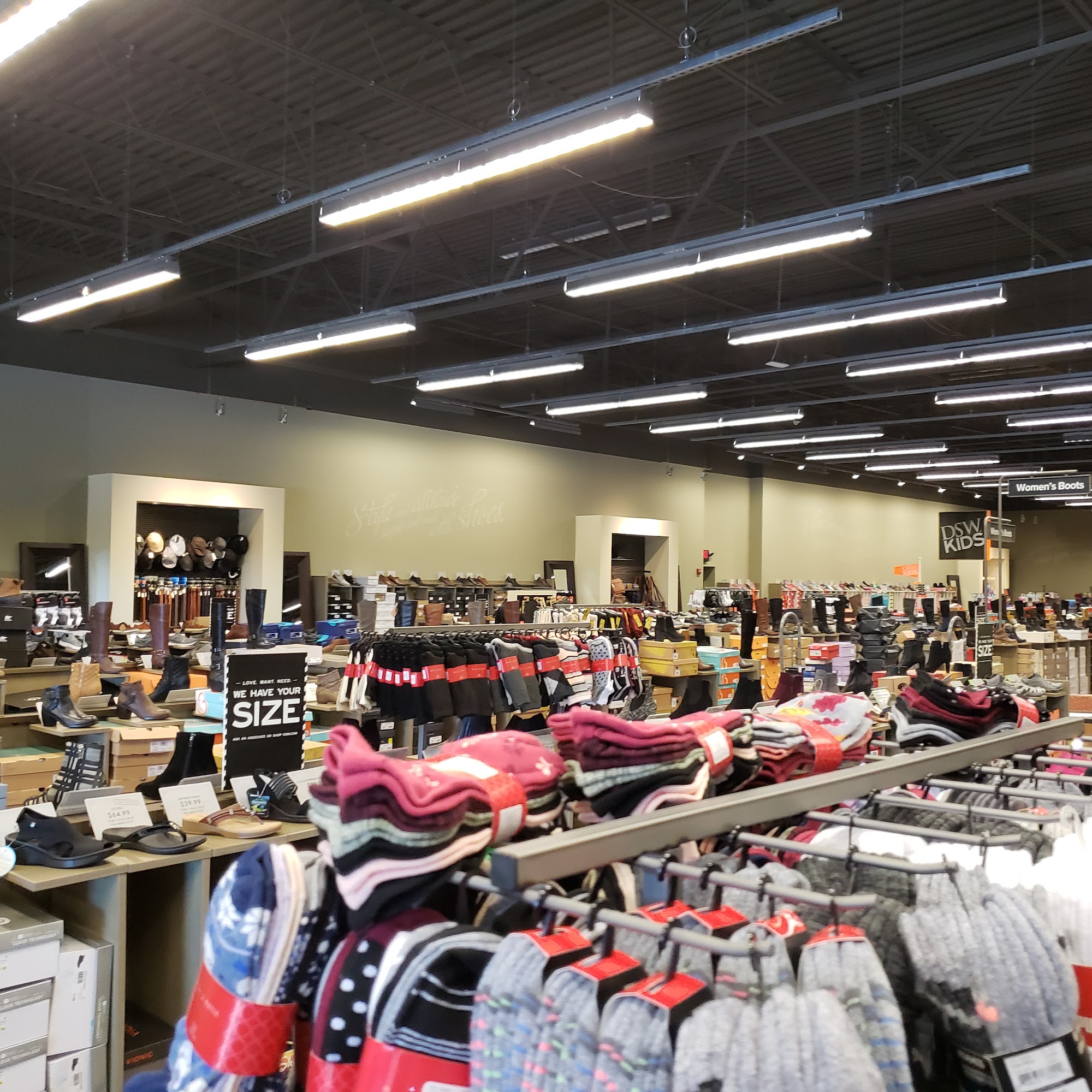 DSW Designer Shoe Warehouse is a large and well-organized store that offers a wide selection of shoes for men, women, and kids. Customers can find over 25,000 pairs of designer shoes from brands like Nike, Cole Haan, Sperry, Puma, Dr. Scholls, New Balance, TOMS, and Vince Camuto, among others. The store features not only shoes but also handbags and accessories, making it a one-stop shop for fashion needs. The store is known for its friendly and helpful staff who assist customers in finding the right size and style, even helping with online orders if items are unavailable in-store. The store’s layout is convenient, with plenty of benches for trying on shoes and an outside entrance for easy access. It is clean, organized, and handicap accessible. Prices are good, and the selection includes athletic, casual, and special occasion shoes, with a popular clearance section. Customers appreciate the quick checkout process and the opportunity to order out-of-stock items to be sent home. Overall, DSW is a great place for shoe shoppers looking for variety, good service, and a comfortable shopping experience.