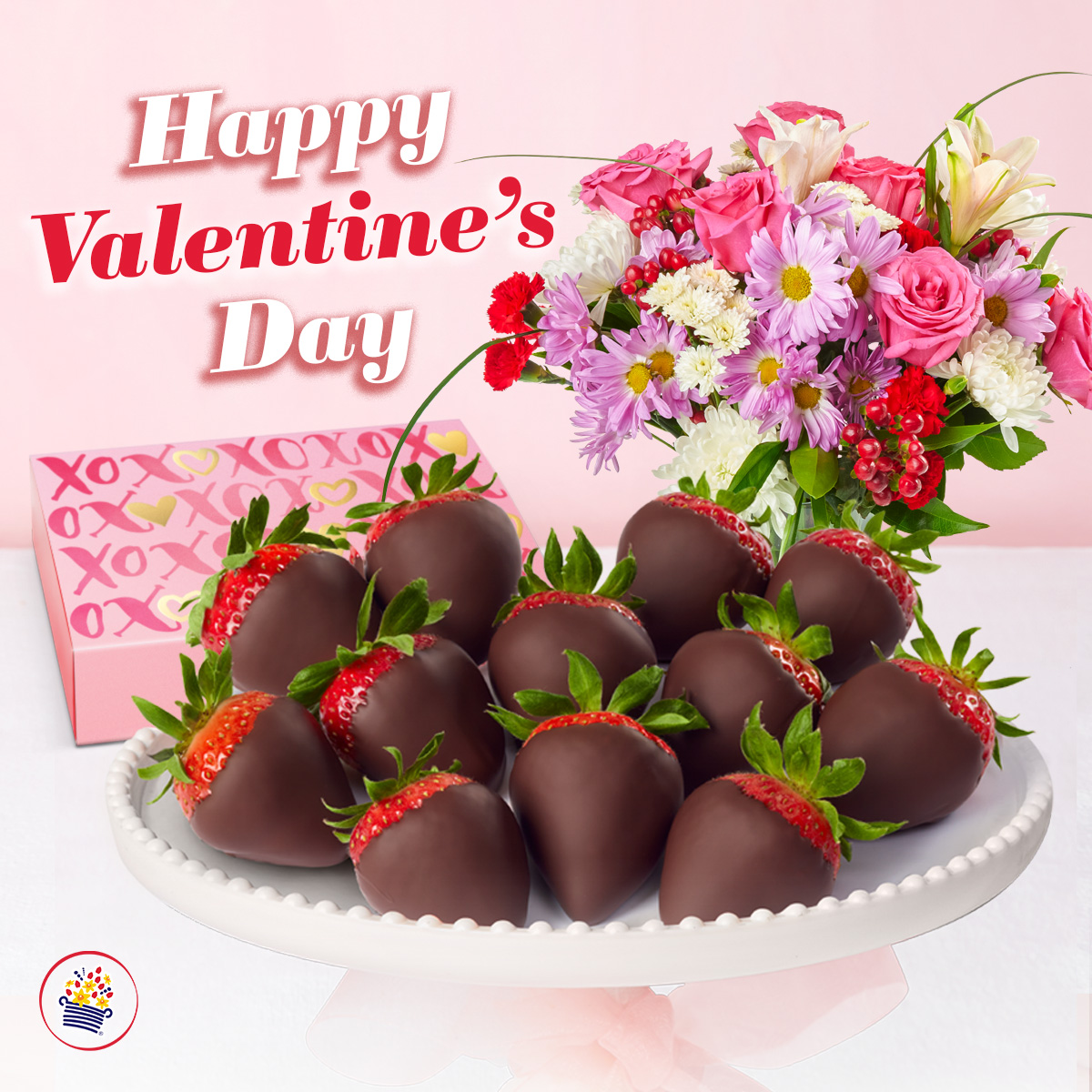 I requested delivery before 1:30 pm. She couldn't guarantee it, but they did indeed arrive before 1:30.The product seems like the standard Edible Arrangements array, which is exactly what I ordered.