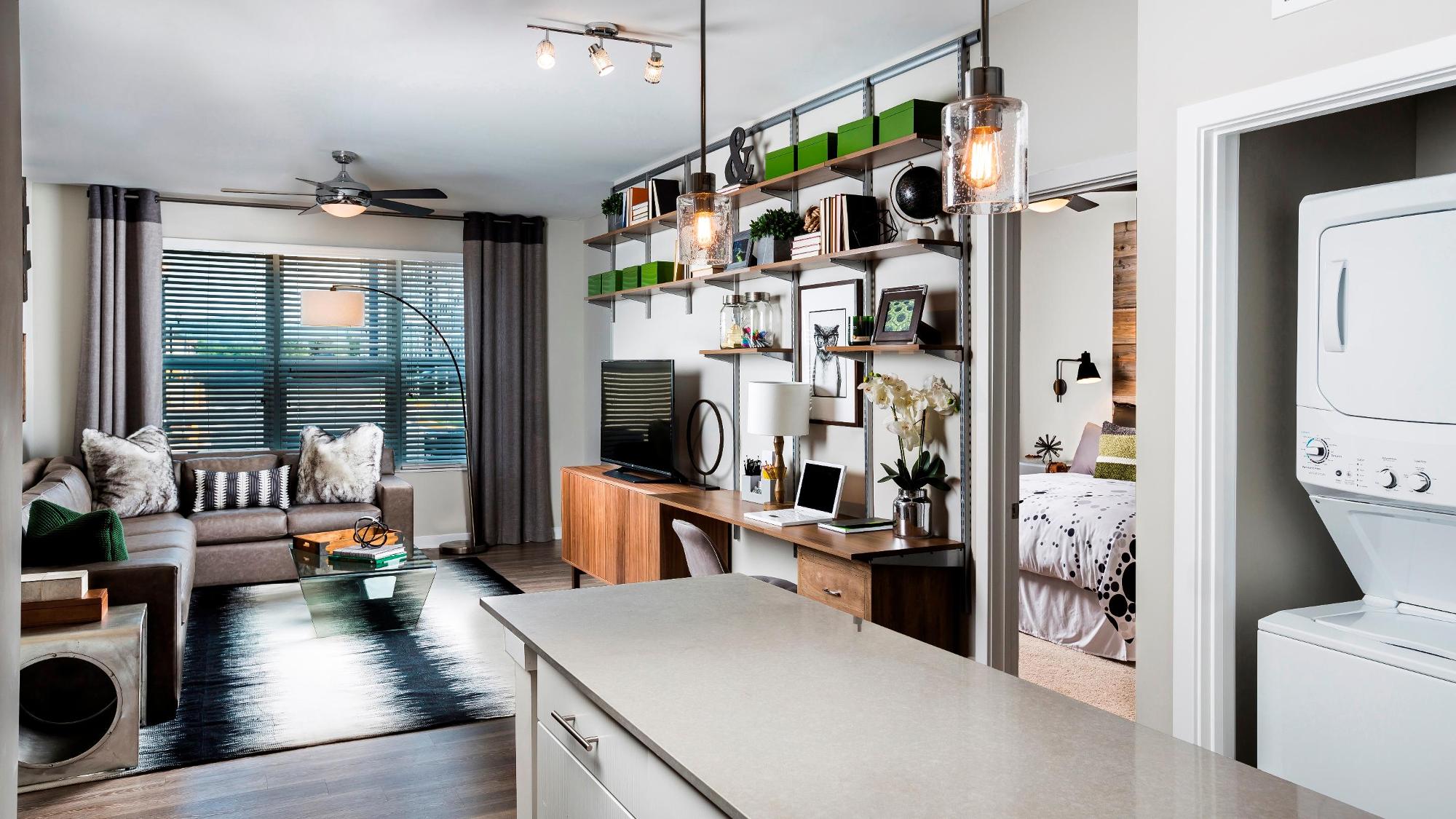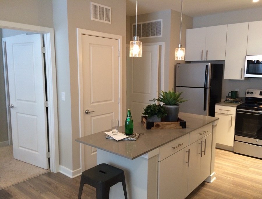Jefferson Place is home to luxurious 1, 2, and 3 bedroom apartment homes with modern designs that are sure to impress! Our spacious and stunning floor plans feature designer inspired kitchens with quartz counters, white oaks cabinets, and a full stainless steel appliance package. Complimenting hardwood style flooring, brushed nickel finished fixtures, and plush carpeting come together to give you a home that truly stands out.