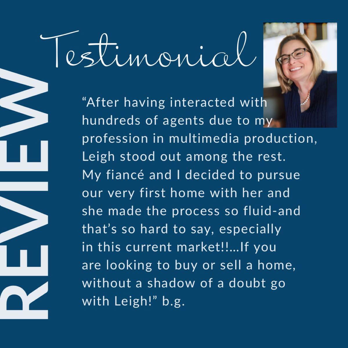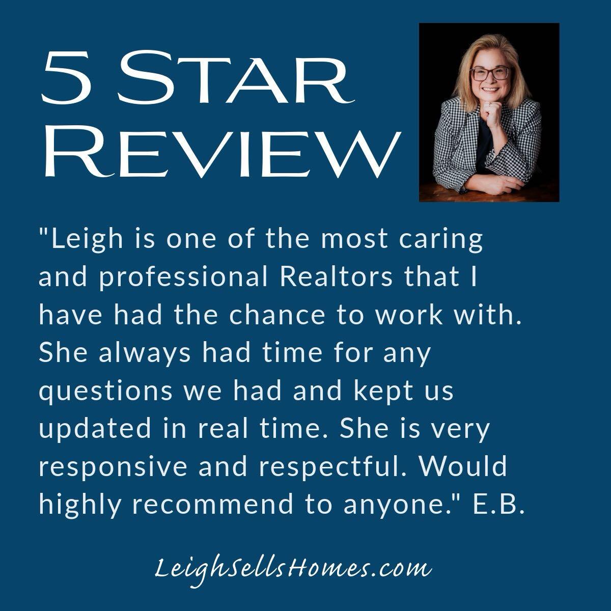 Leigh is one of the most caring and professional realtors that I have had the chance to work with. She always had time for any questions we had and kept us updated in real time. She is very responsive and respectful. Would highly recommend to anyone.