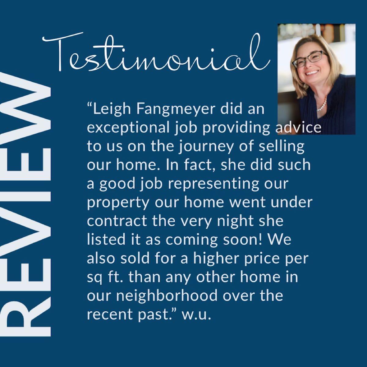 Leigh Fangmeyer of RE/MAX Results is a dedicated, responsive, and professional Realtor. Clients describe her as incredible, a true professional, and an absolute joy to work with. She is known for being kind, caring, and client-focused, making clients feel like they are her only priority. Her communication is great and very responsive, often available during evenings and weekends. She provides superior customer service, guiding clients through every step of the process with wisdom and experience, ensuring a smooth and stress-free transaction. Her creative marketing ability, attention to detail, and hard work help homes sell quickly and for a great sales price. With integrity and passion, she helps clients find their dream home or sell successfully, making the entire process feel supportive rather than transactional. Clients highly recommend her for any real estate need.