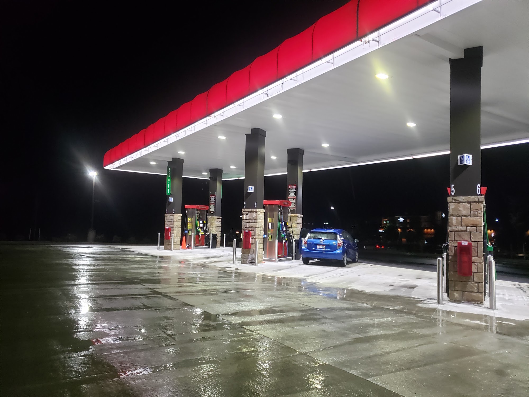 The last few times I have been to this location there has not been any windshield fluid in the containers at the pumps. Overall cleanliness at the pumps has decreased with trash overflowing out of the cans.