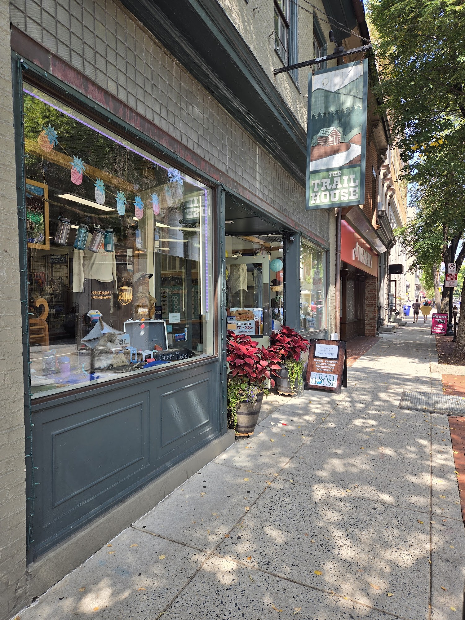 About The Trail House Located in Historic Downtown Frederick, Maryland, The Trail House offers a wide selection of products from clothing, backpacks, sleeping bags, tents, climbing gear, to an extensive array of both technical and casual footwear.