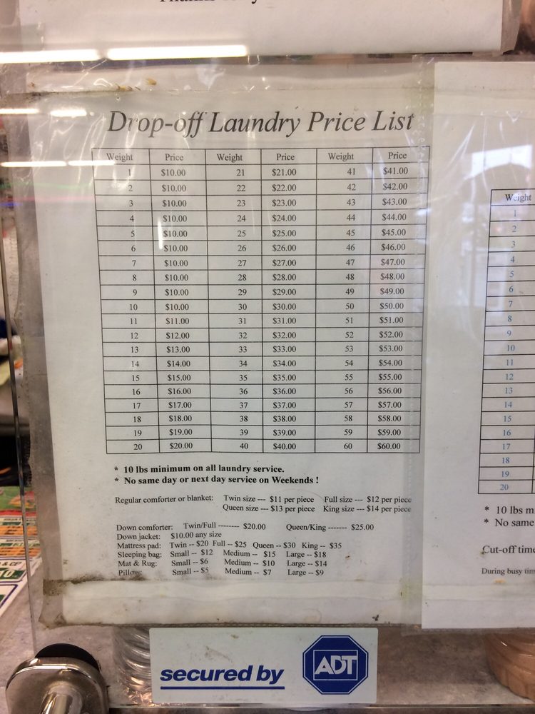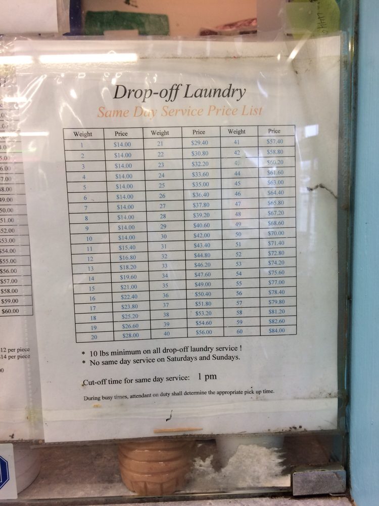 The drop off laundry service is great. It costs about $13 for a heavy bag of laundry and they wash and fold it for you. I've been doing it for years. Great employees.