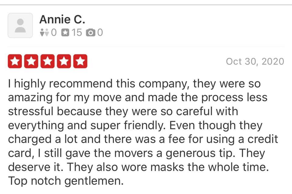 Best team I’ve ever hired for a move. They took great care of everything. Their pace was not chaotic nor slow…but deliberate. These are the guys to hire when are moving.