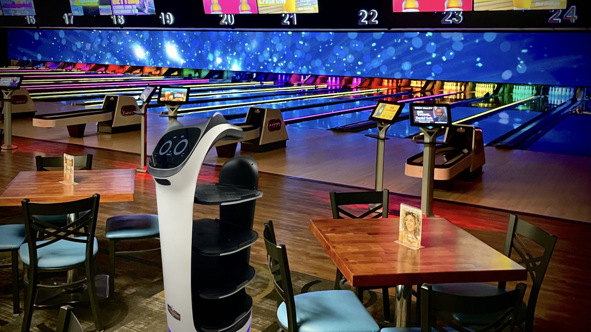 Modern and clean. Themed rock n bowls look like fun