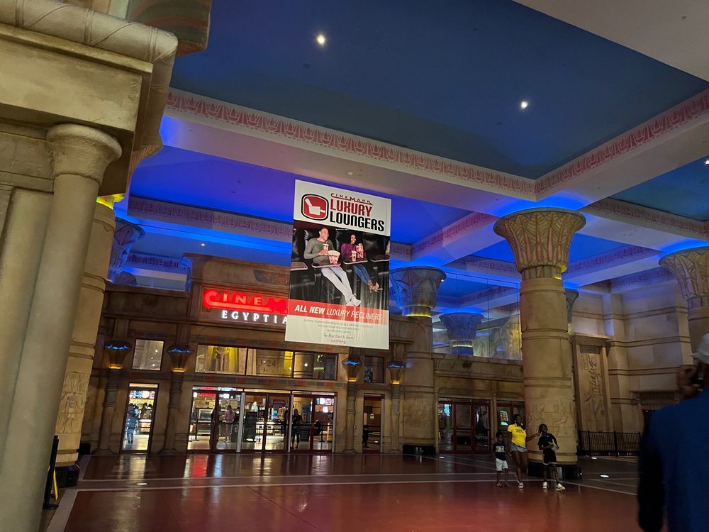 Cinemark Egyptian 24 and XD is a huge, cool giant theater with comfortable and clean seats, offering Cinemark XD and DBOX screenings. The theater itself is nice. However, parking can be a nightmare, especially on opening weekends. The customer service staff is very average, and it can be tough to find employees not bickering. Some upholstery on seats was shredded. Prices are really good with the app, though it often has too many people.