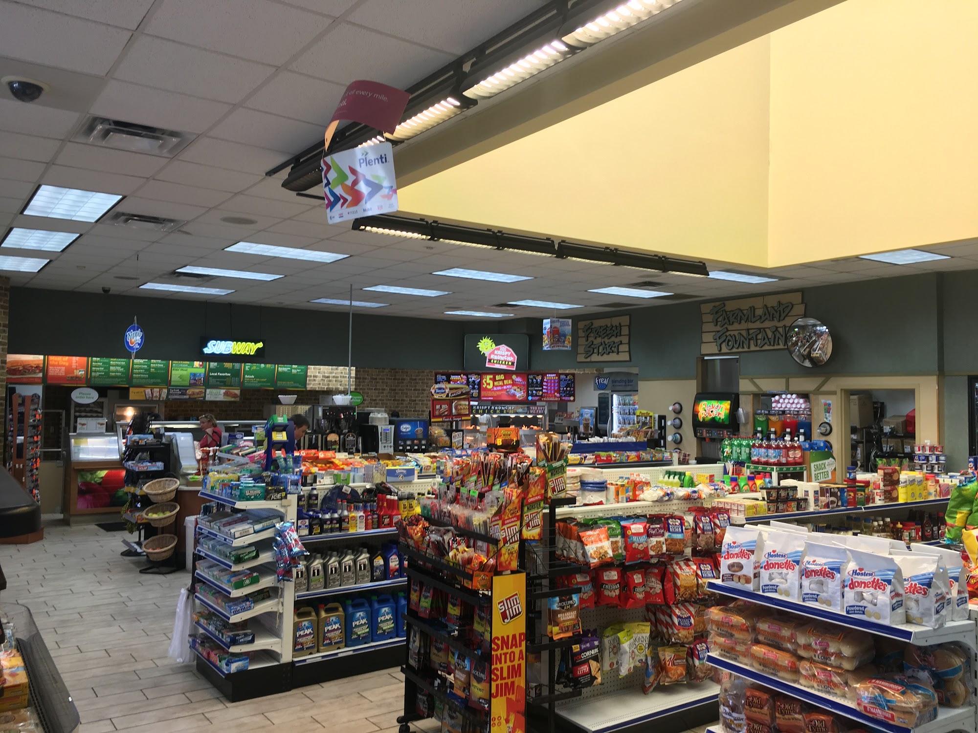 Larger inside than it looks from the outside. Bathroom was clean and a/c was cold. Pretty busy as it is only station for miles in any direction. Small post office in same building.