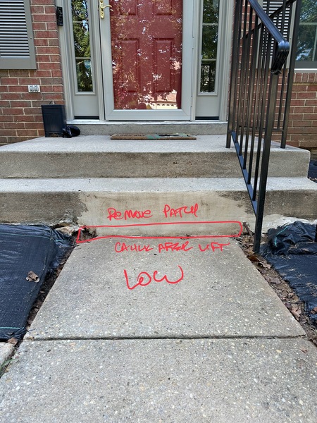 Concrete walkway to front door had settled a few inches making the first step difficult. They showed up on time, explained the process, accomplished the task, cleaned up afterwards, all at a fraction of the price of replacing the walkway. Excellent work and plan to use them again for project leveling pool decking.