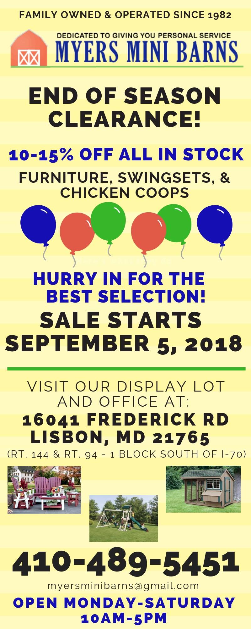 Myers Mini Barns is a highly recommended, family-owned business known for its quality storage sheds, garages, and outdoor furniture. Customers praise the team for being pleasant, professional, and offering excellent customer service from start to finish. The delivery crew is appreciated for their great service and added value, making the purchase smooth despite some challenges, such as getting a shed into a backyard. The business provides well-designed products at great prices, with many customers noting that their furniture remains in excellent condition even years after purchase. Staff members are attentive and knowledgeable, helping customers find the right outdoor chairs, rockers, and gliders. Overall, Myers Mini Barns is valued for its friendly team, quality products, and dependable service, making it a top choice for storage and outdoor furniture needs.