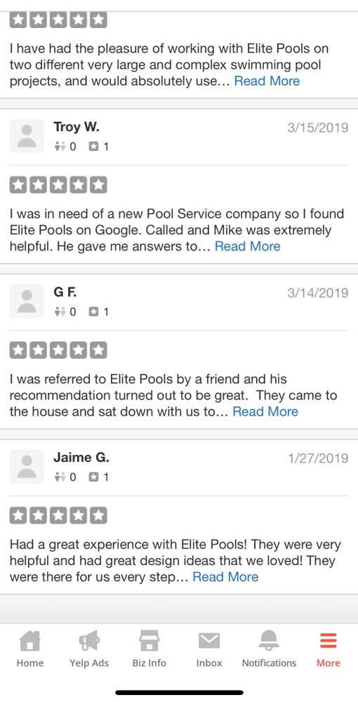I am extremely happy with Elite pools. The tech came over, spent about an hour, and my pump is running better than it has in years! I can't wait for them to Remodel my pool!