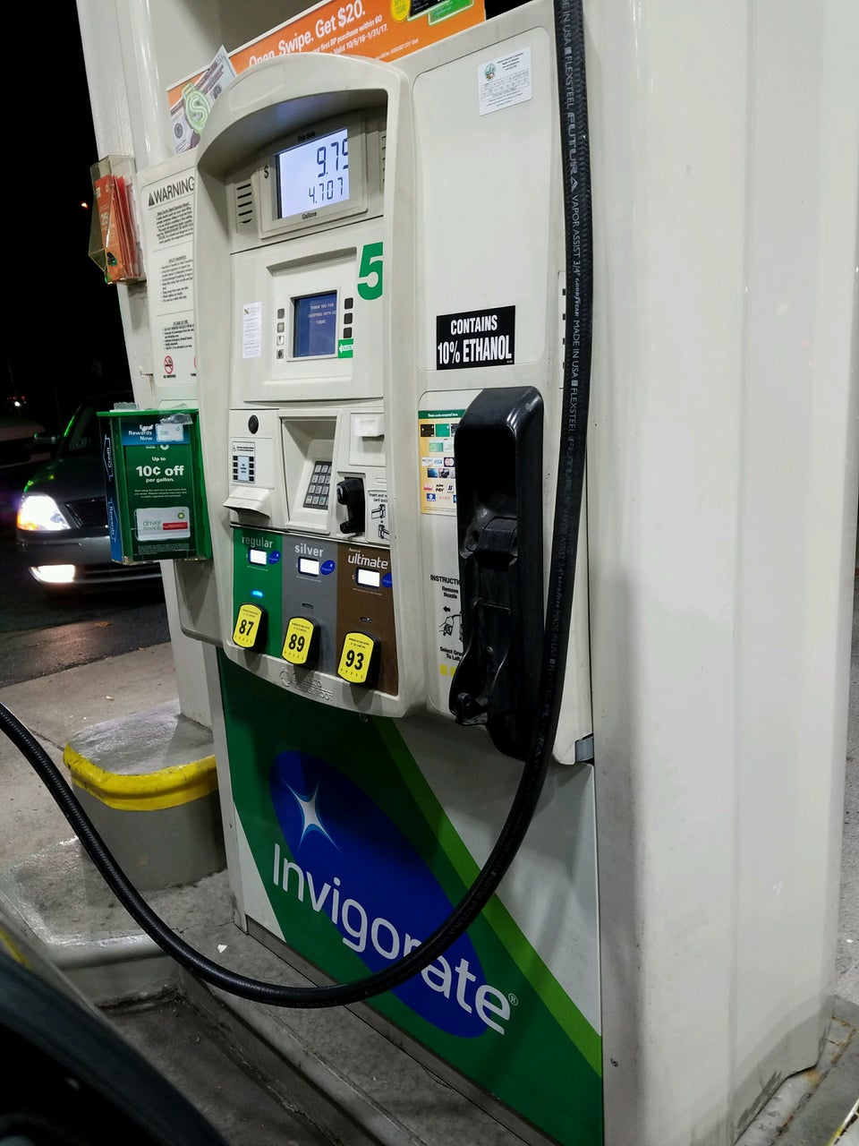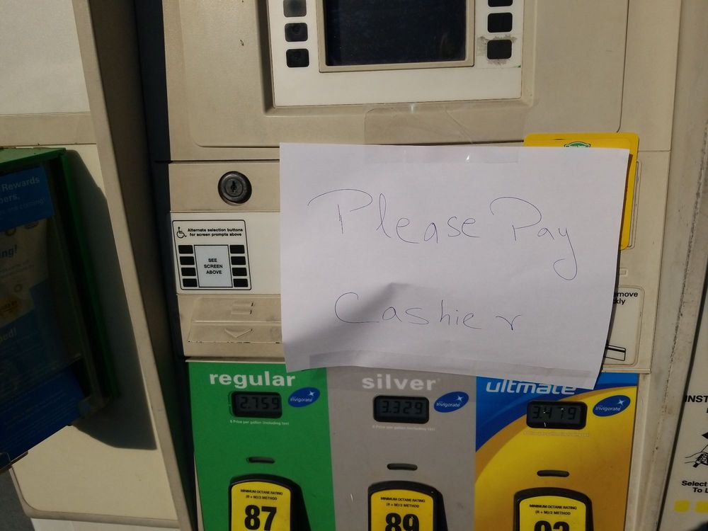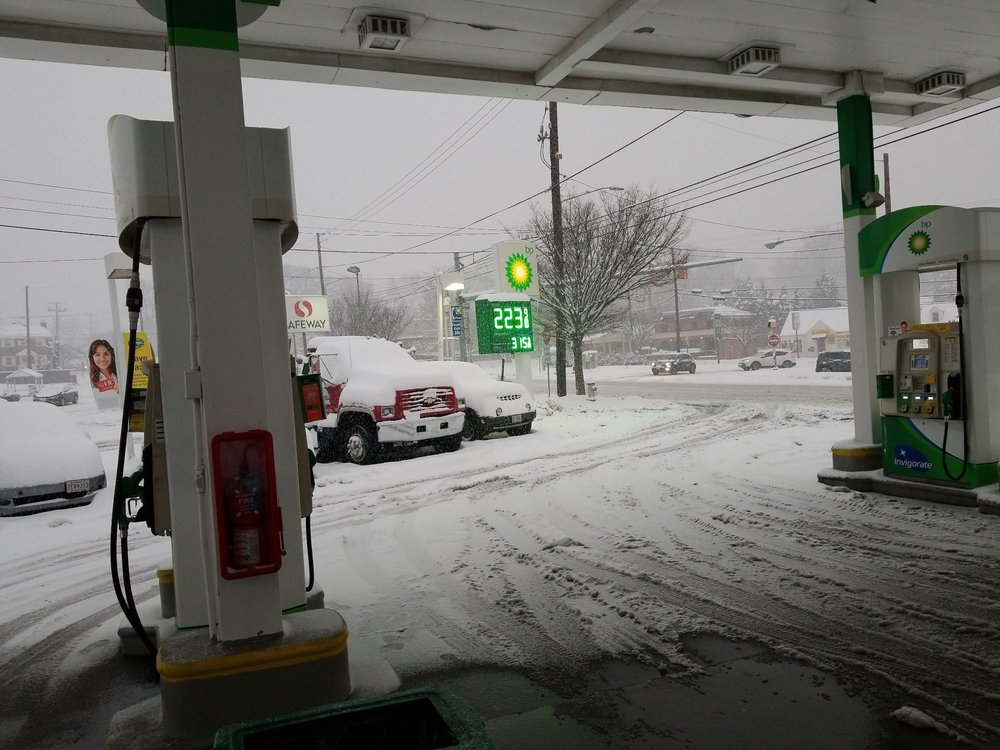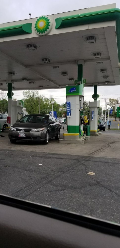 The main reason why I like this BP: It seems to be the only local place that has a FUNCTIONAL air pump that accepts coins AND credit/debit cards. Compared to the gas station across the street, most things (in particular, gas) tend to be a bit cheaper. While very brief, my interactions with workers have been positive.
