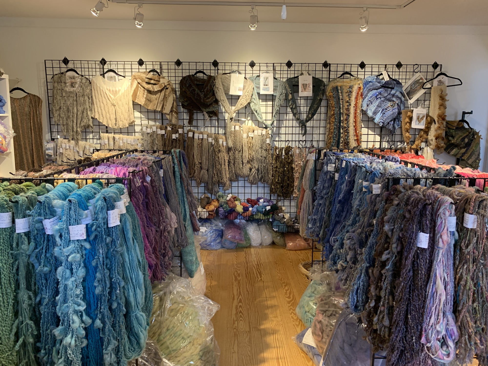 Unbelievable!!!! If you are a spinner, you will definitely want to come here! There are more well prepared rovings (mostly merino) of the most wonderful colors and softness than you can imagine. If you don't spin, there are also many handspun yarns, with a myriad of art yarn choices.