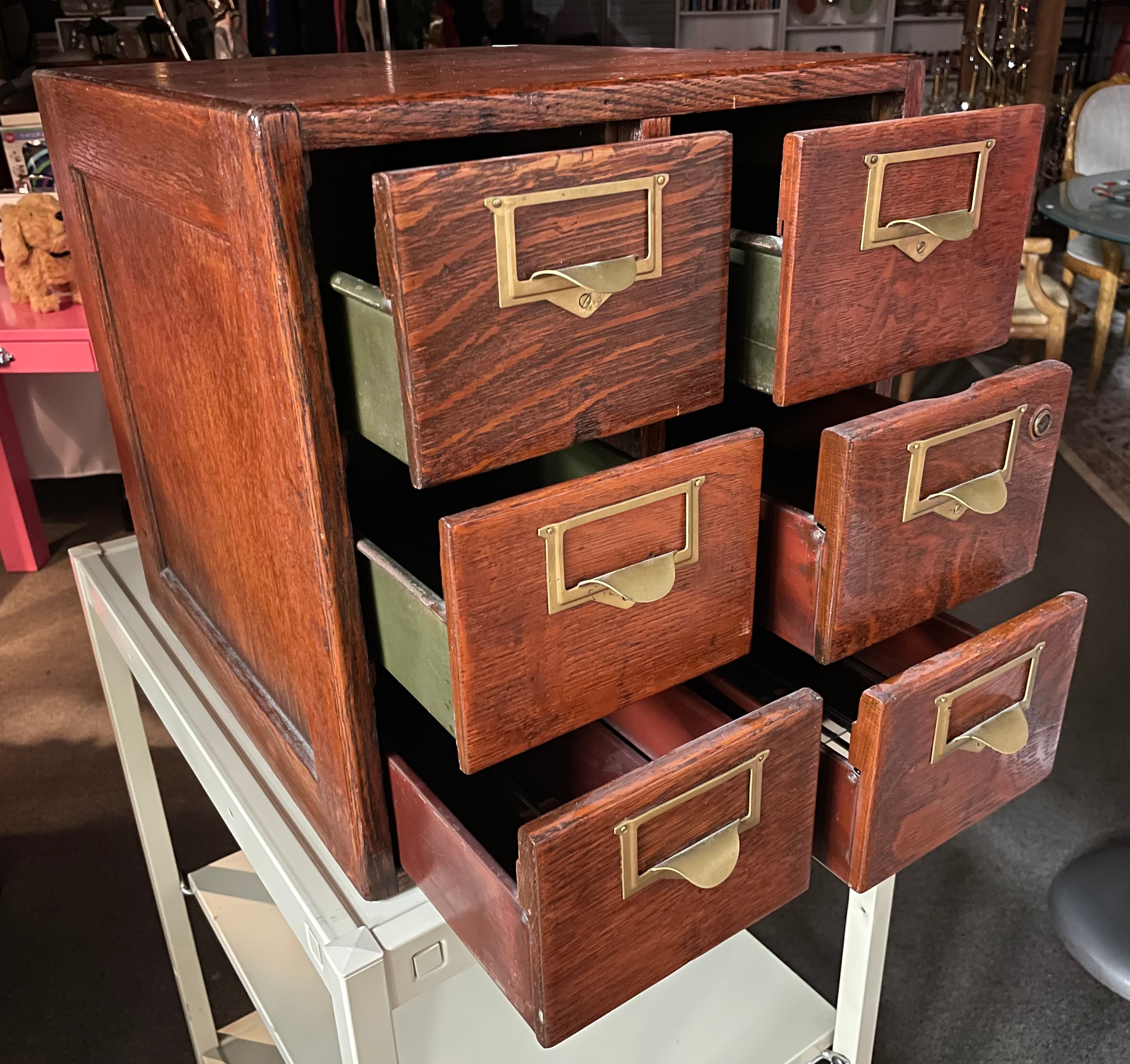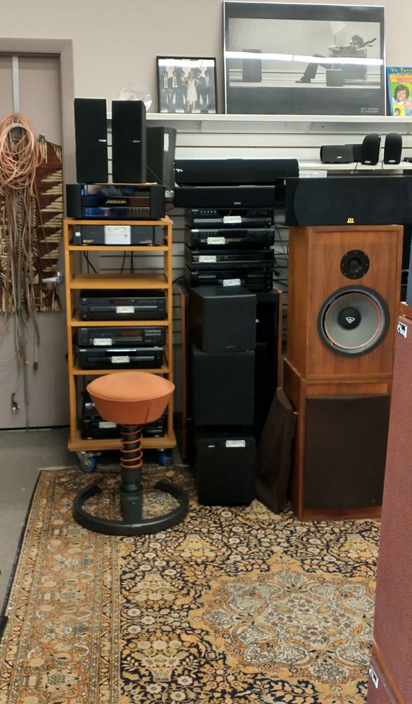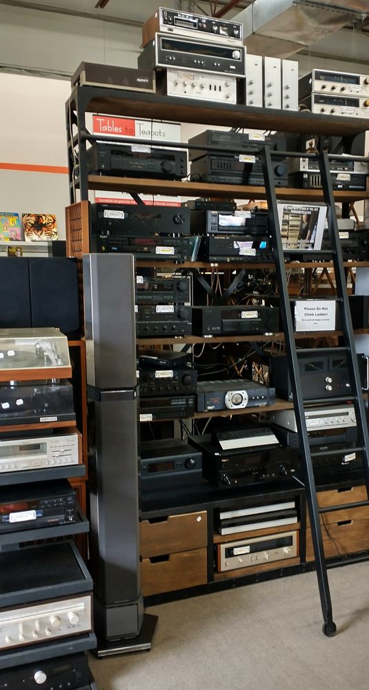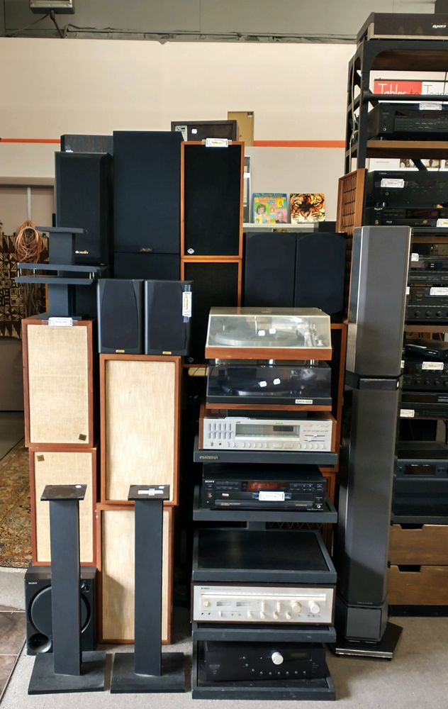Fun variety! Jewelry and clothes and vintage AV audio and kitchen things and musical instruments and even a little furniture & decor.