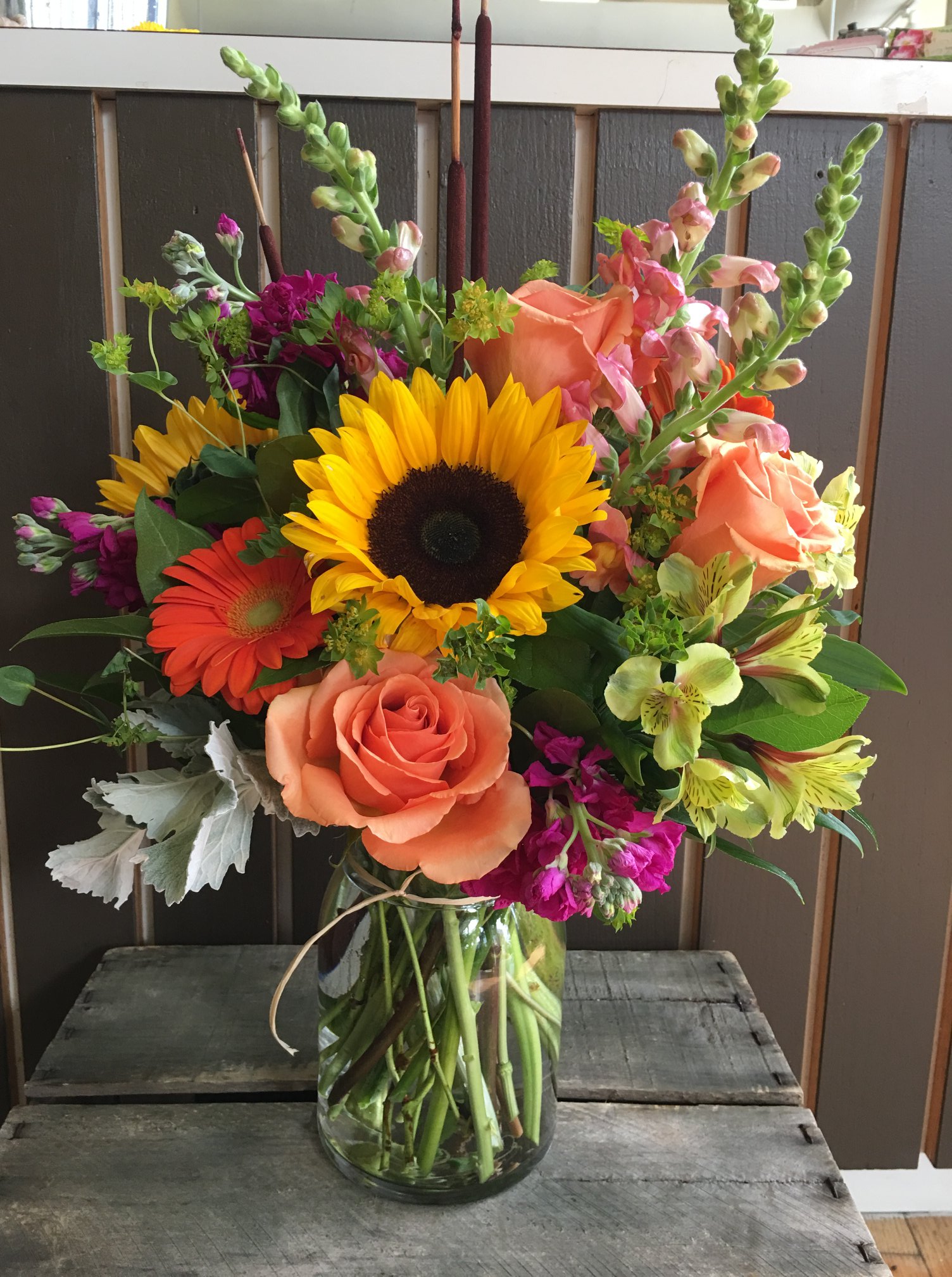 The arrangements I ordered for a graduation bouquet were so large! She did a fabulous job arranging and putting together the perfect yellow arrangement. The flowers were fresh, held up nice all day, smelled delightful, and were absolutely beautiful. I was quite pleased with my purchase. Julie A
