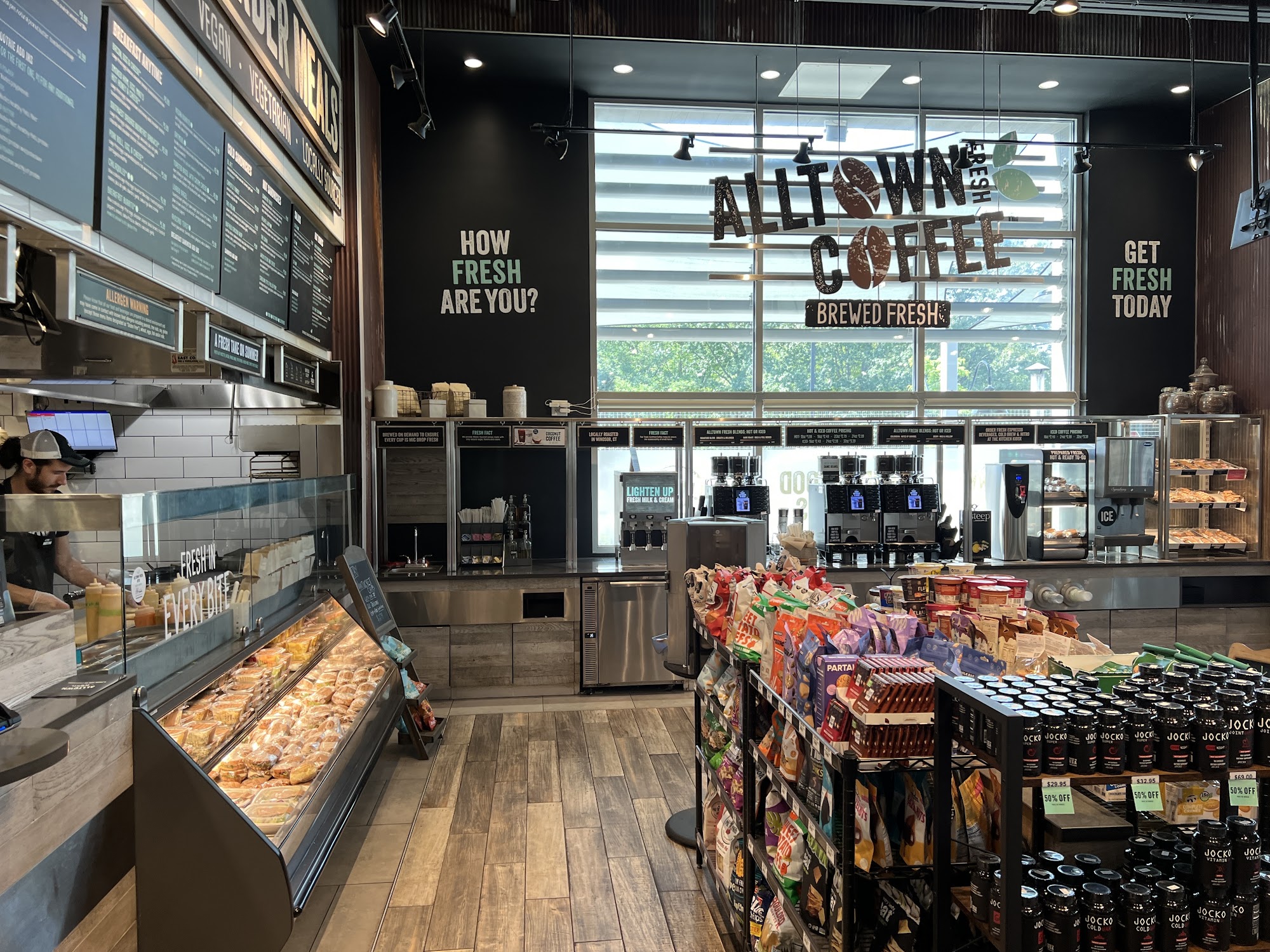 Alltown Fresh® is a popular East Coast spot known for its fresh, handcrafted food and thoughtfully curated goods. It offers a variety of services including gas and diesel, custom bean-to-cup coffee, and both indoor and outdoor seating. The business also features groceries, catering, craft beer where permitted, Wi-Fi, snack options, and charging stations for phones and electric cars. Customers appreciate the focus on healthy, fresh food that doesn't sacrifice convenience, with offerings like smoothies, breakfast sandwiches, made-to-order salads and bowls. The environment is clean and well-organized, creating a welcoming atmosphere. Staff members are friendly and attentive, often going above and beyond, which keeps customers coming back. The kitchen serves fresh food, including grilled items like Persian chicken or beef kabobs with rice and veggies, highly praised for their flavor and tenderness. Many truck drivers and local community members frequent Alltown Fresh® for its great reputation, good deals, and community involvement. Overall, it combines a convenient gas station experience with quality food and friendly service.