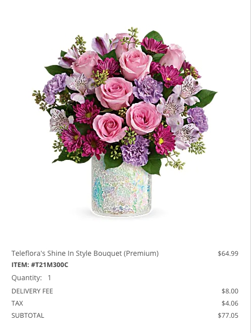 Received a beautiful arrangement of flowers this week. One of the prettiest I have received in recent years. I was equally impressed with delivery person who took the time to find me because the address included on the order was incorrect (wrong street and city). Great flowers and customer service!