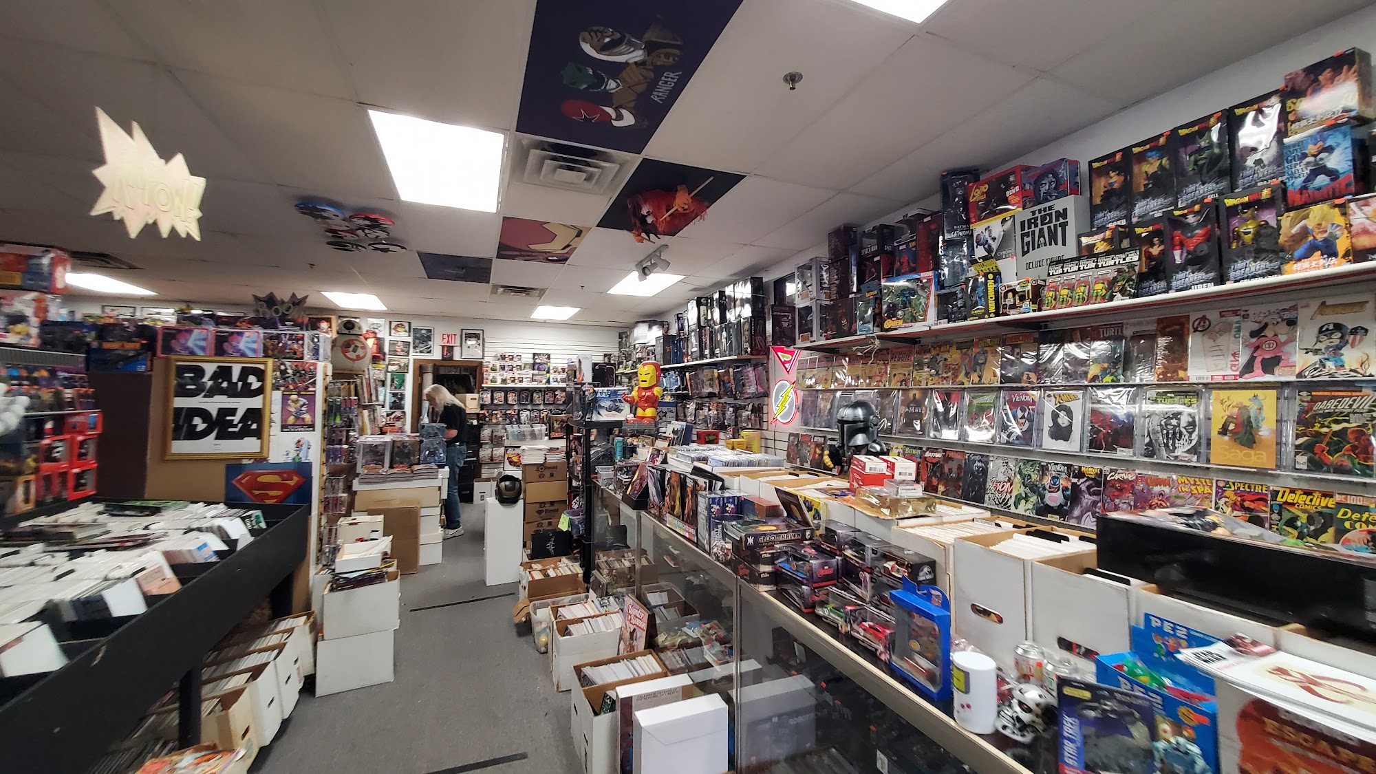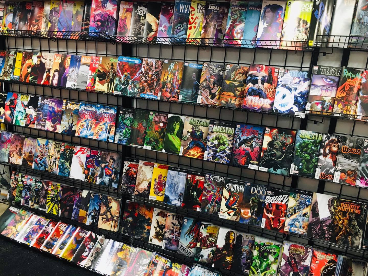 Rubber Chicken Comics is the best and only place to get comics, with an amazing, varied, and incredibly massive selection. The store has a huge discount section and you cannot beat the prices, paying below market. It is a great place for collectors of all things comic book based, including rare collectible figurines, with literally a million things to look at. The space is small, crowded, and a bit tight, appearing chaotic at first glance. The staff, owner, and everyone behind the counter are friendly, knowledgeable, super helpful, and honest. They put on great events for kids and will try to order items for customers. It is always worth a trip.