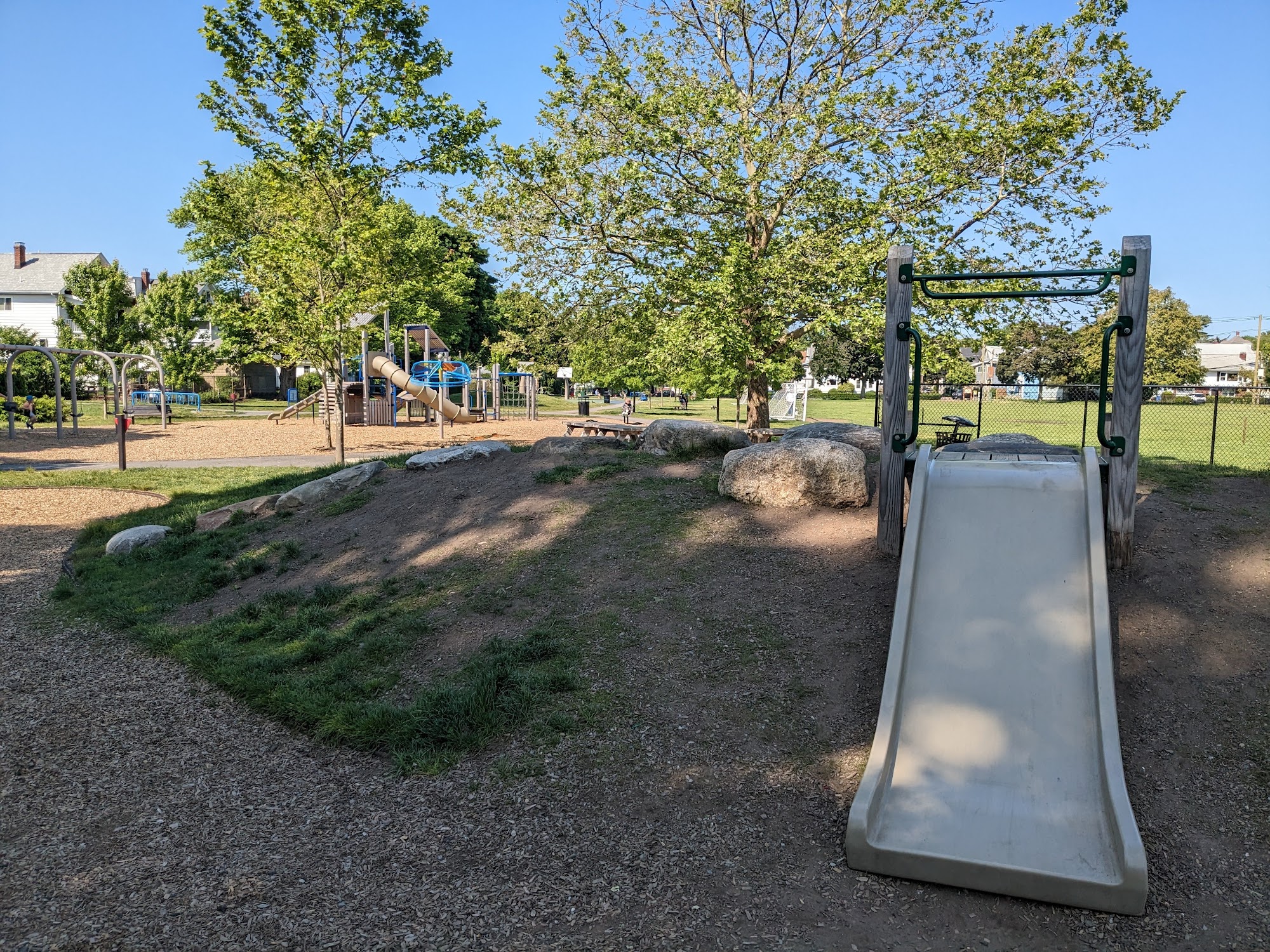 Pequossette Park is a versatile and well-maintained outdoor space that caters to people of all ages. The park features fun and engaging play structures for both toddlers and older children, providing ample opportunities for active play. Additionally, the park boasts a variety of amenities, including shaded areas for picnics, a path for cycling and scooter riding, a large field, basketball and tennis courts, as well as outdoor fitness equipment. With its clean, quiet, and peaceful atmosphere, Pequossette Park is a beloved community hub where families can enjoy a wide range of recreational activities year-round.
