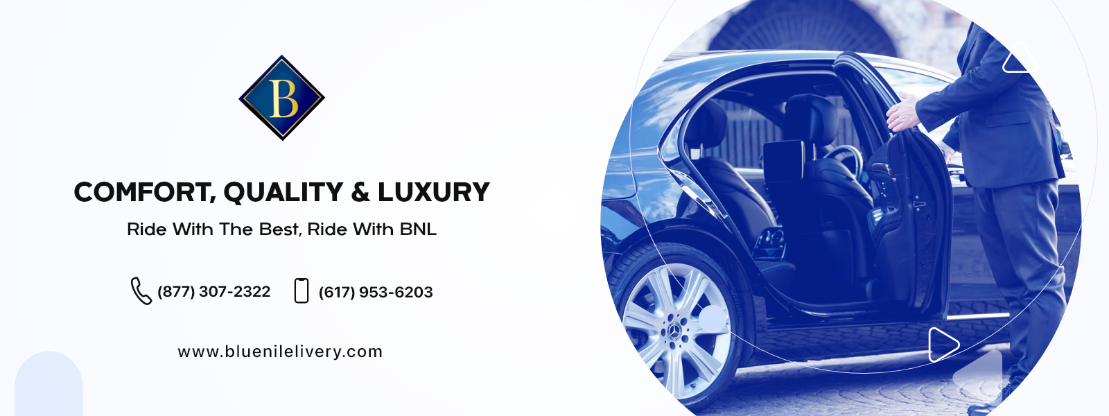 Blue Nile Livery – Trusted Boston Car Service & Logan Airport Transportation Welcome to Blue Nile Livery, your go-to provider for reliable and elegant transportation in Boston and across Massachusetts. Since 2013, the company has been known for delivering top-quality Boston car service, professional Boston limo service, and stress-free car service to Logan Airport—all with a personal touch. Every ride with Blue Nile Livery is designed for comfort. The professionally trained chauffeurs arrive on time, dressed in formal attire, and ready to make your trip as smooth as possible. Whether you're heading to Logan Airport, a business event, or a night out in the city, Blue Nile Livery has got you covered. Customers have praised the company's fantastic service, with one client describing their driver, Ali, as professional and friendly at every turn. Another customer found the booking process to be super easy, the driver professional and on time, and the SUV well-appointed and a newer model. Clients have also highlighted the excellent communication, prompt service, and friendly staff, with one customer saying they will always ask for their driver, Eric, if he is available. Overall, Blue Nile Livery is a trusted and highly recommended Boston car service and Logan Airport transportation provider, offering a stress-free and comfortable experience for all its clients.