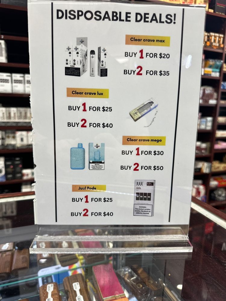 Good prices on the fresh frontos, bongs and more!! They offer a great variety of cigars, trays, & more!!
