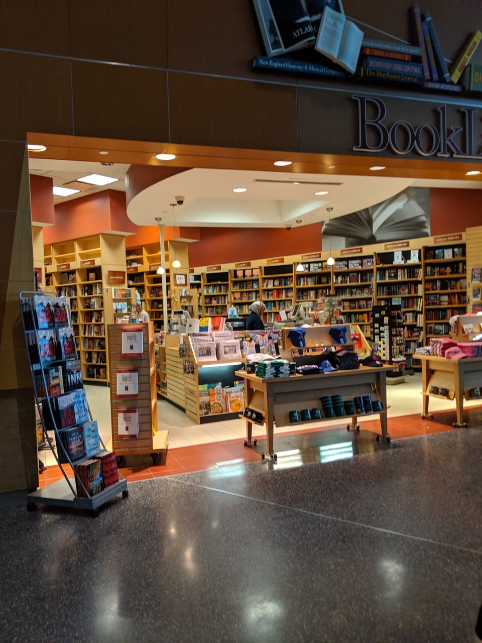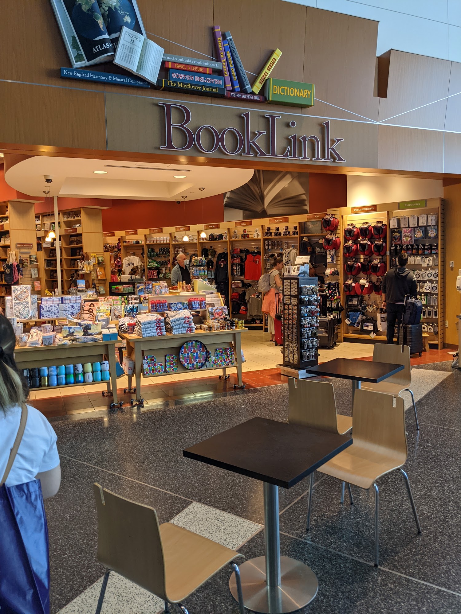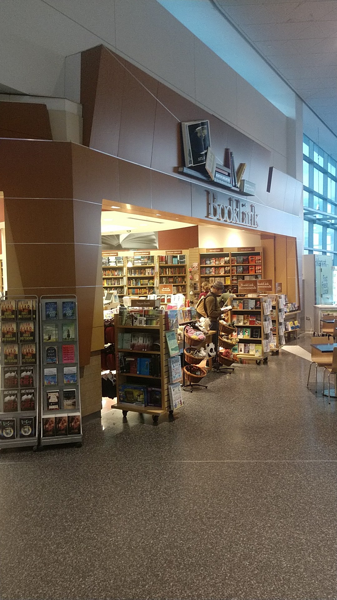 Lovely place to sit. Shop had electronics, some snacks and nice selection of books. A little oasis in terminal A