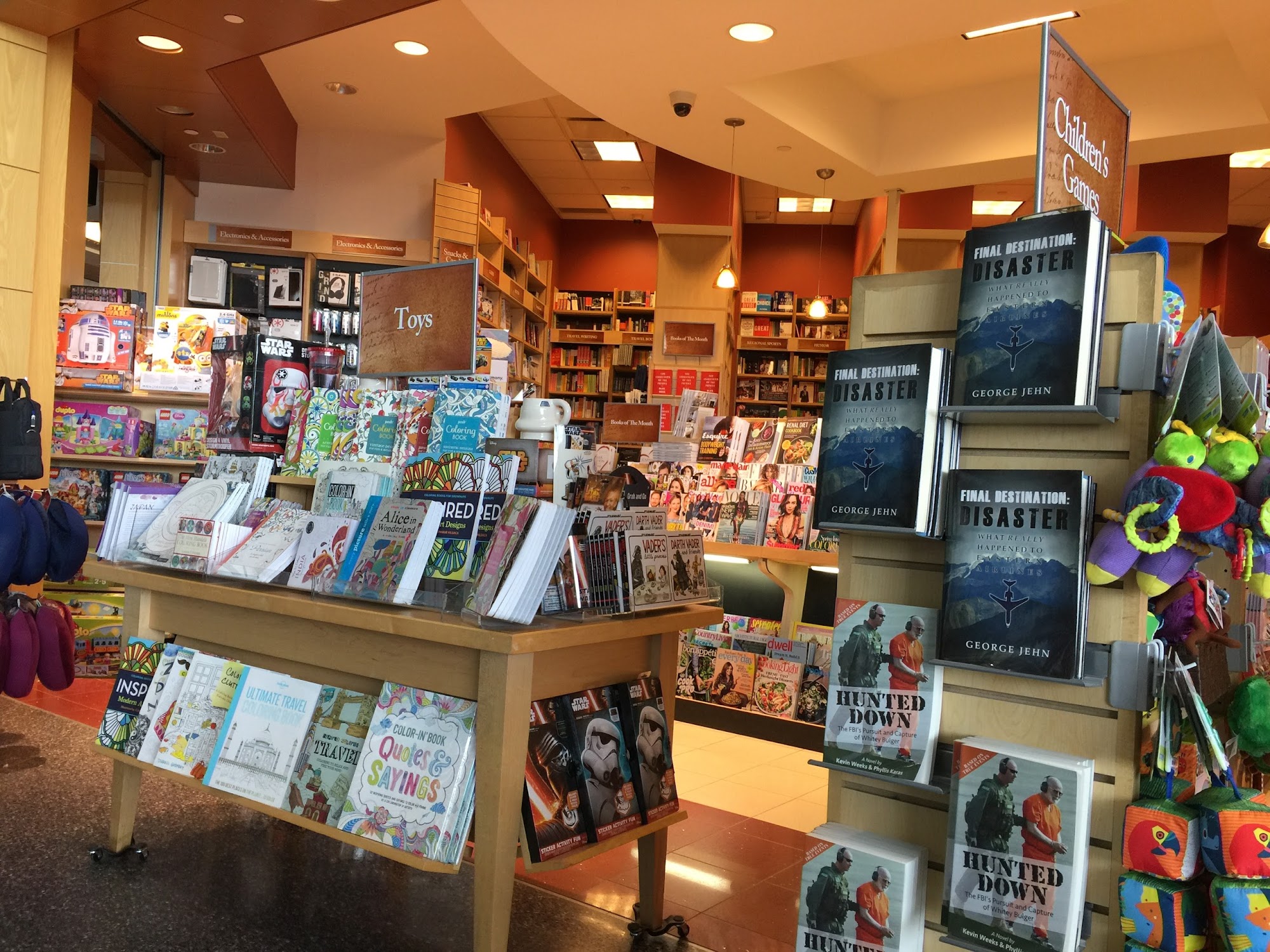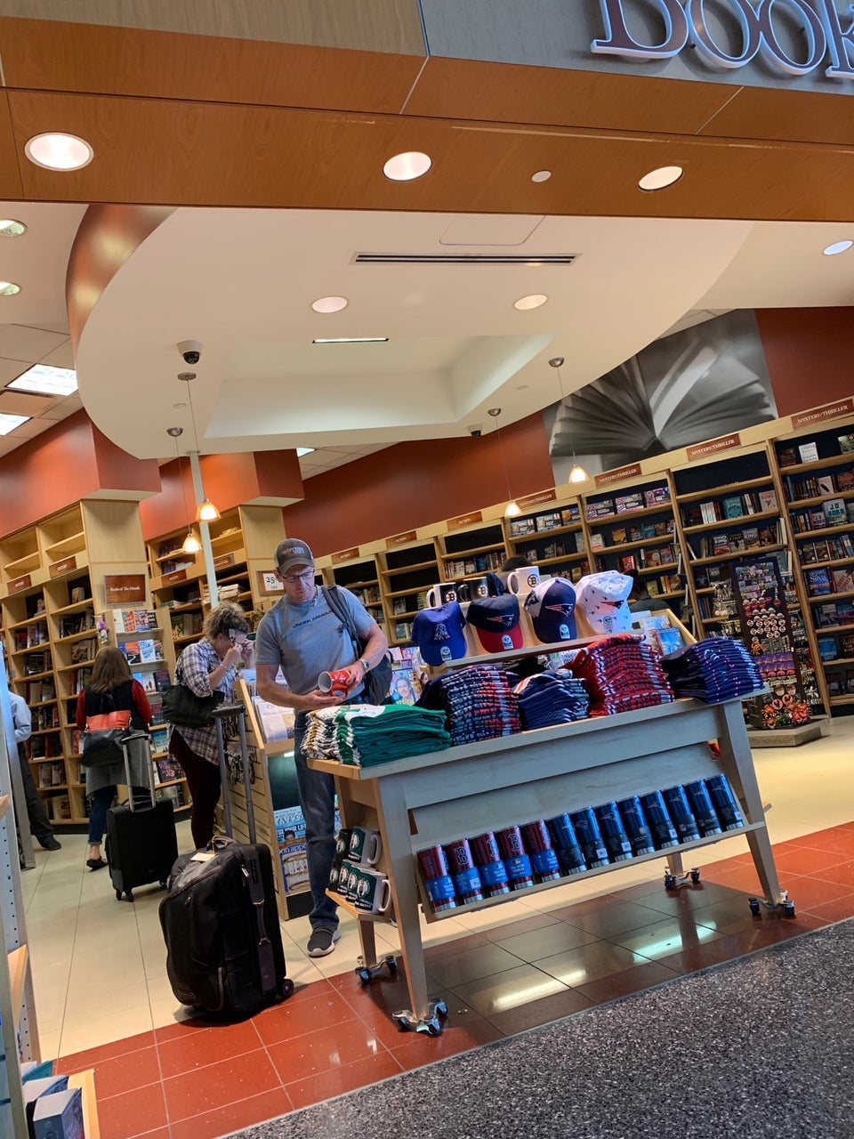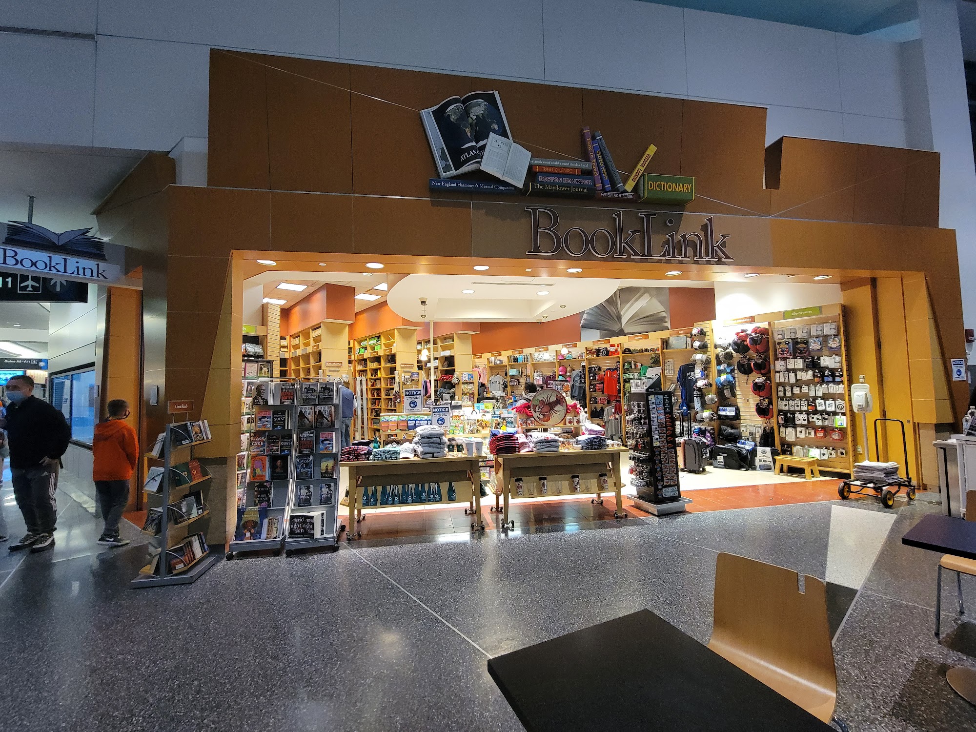 Lovely place to sit. Shop had electronics, some snacks and nice selection of books. A little oasis in terminal A